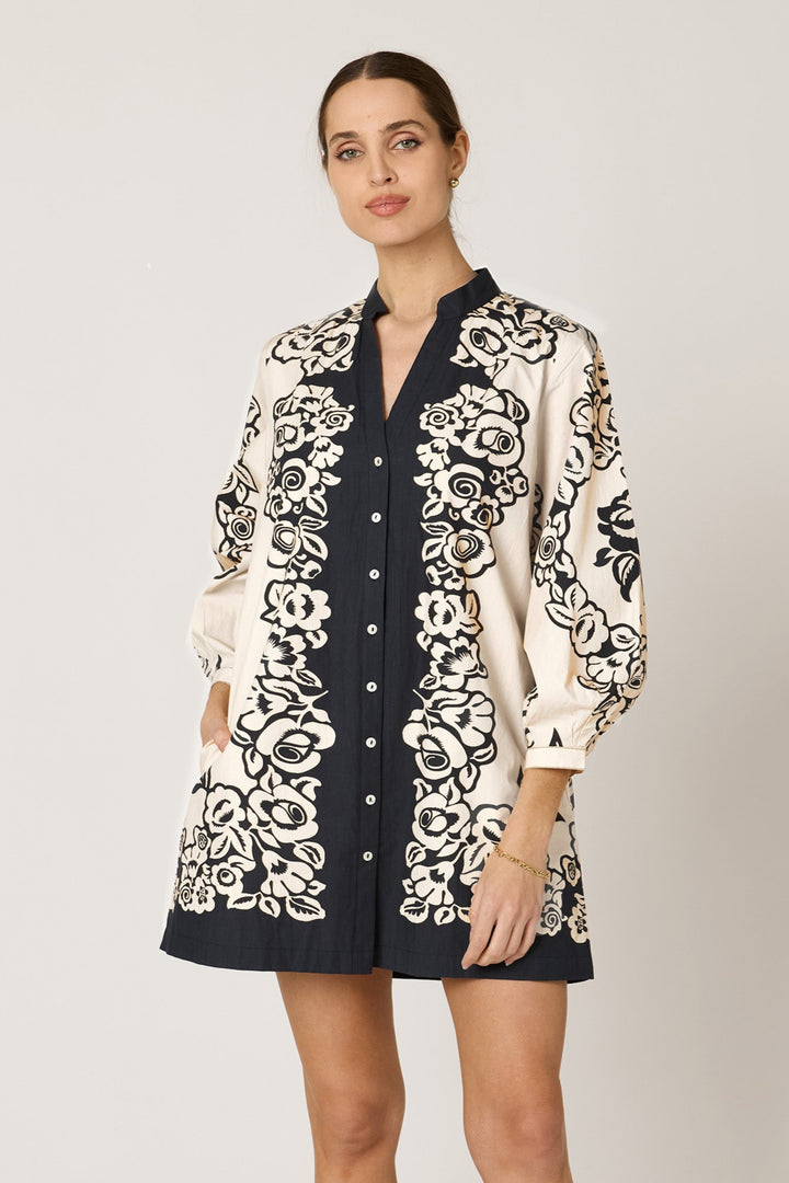 Step out in style with the Lilian Mini Dress in Botanico Print. This playful shirt dress features a vibrant botanical pattern that effortlessly transitions from daytime charm to evening chic. Its flattering mini length and relaxed fit make it perfect for brunch, office days, or dancing the night away. Embrace easy elegance wherever you go!