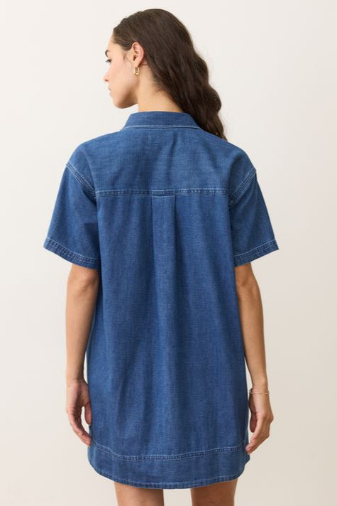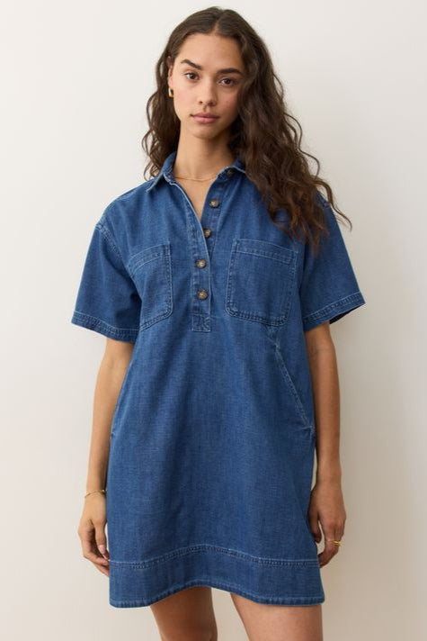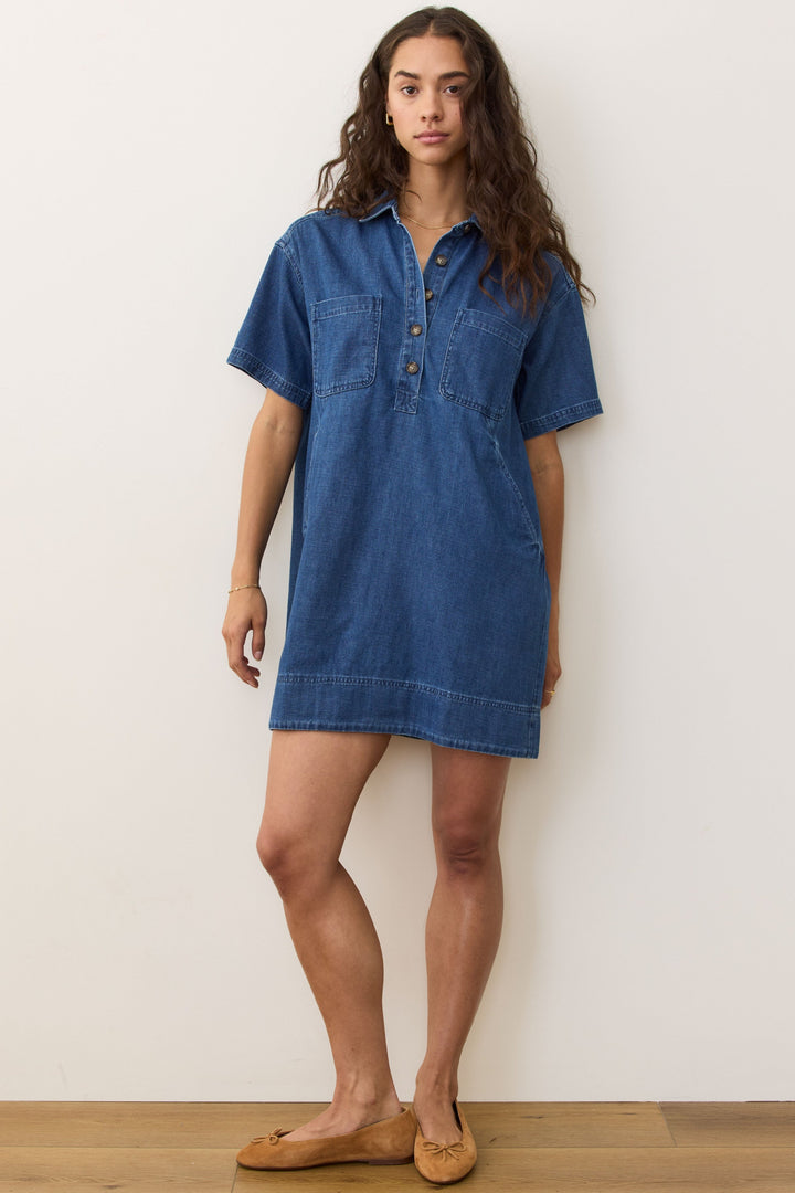 Meet your new go-to mini dress: the Liza Denim Mini Dress in a medium wash. Crafted from our perfectly soft denim, this playful A-line shift features a button-neck and handy built-in pockets. It’s the easy, stylish choice for those days when it feels too chilly for a mini—yet you still want to stand out looking effortlessly cute while everyone else is bundled up.