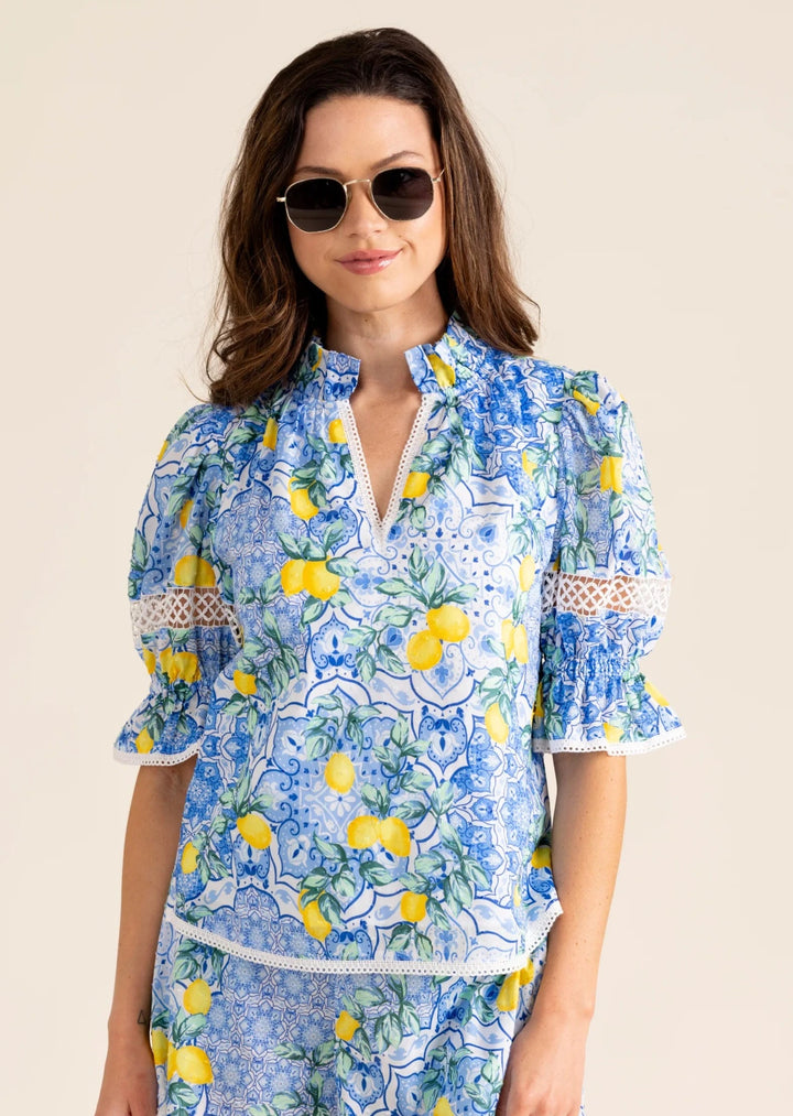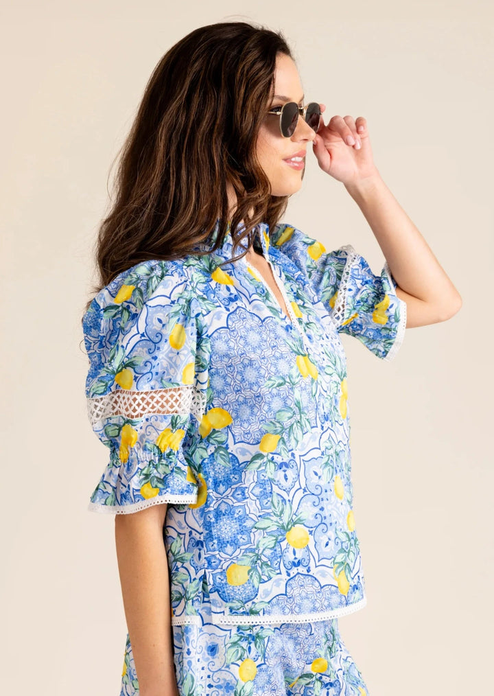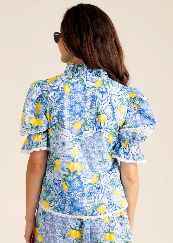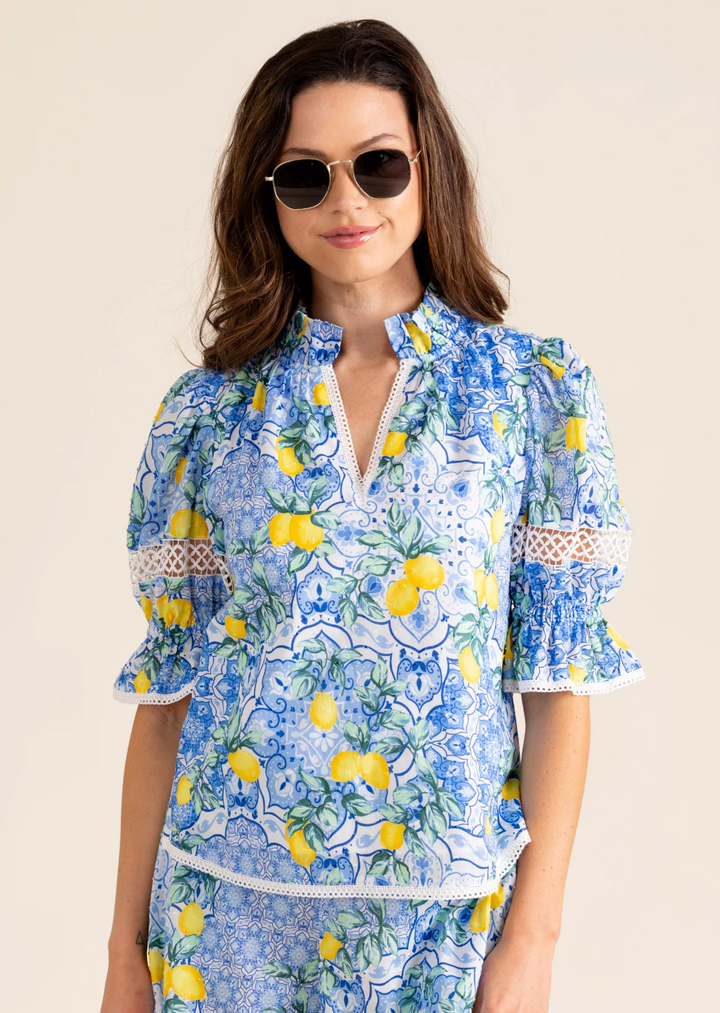 Get ready for some serious summer style with our bright and playful Lemon Print Top! The v-neckline and ruffle collar add a touch of femininity, while the puff sleeves and boxier fit bring a trendy edge. Perfect for pairing with white shorts or chinos, this top will have you looking fresh and fashionable all season long!