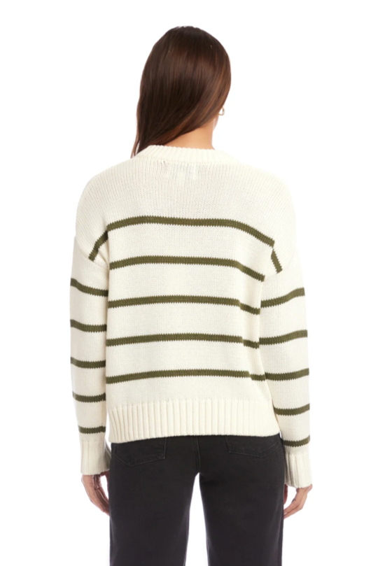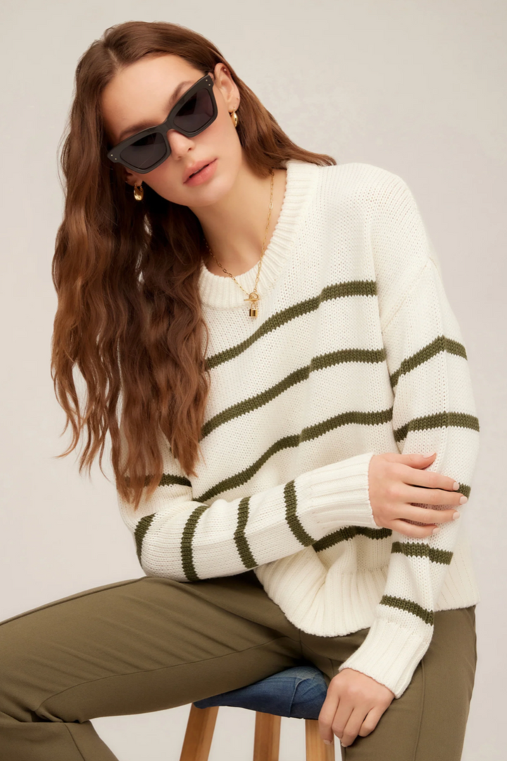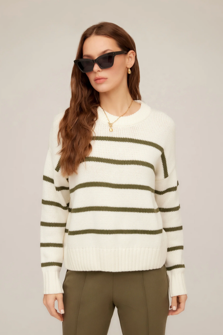 Stay cozy and stylish in the Luca Crewneck Sweater- Stripe. Made from a soft, stretchy knit, it wraps you in warmth while keeping its shape. The playful contrast stripes and wide ribbed trims add a fun twist to a classic crewneck design. With a relaxed fit and full-length sleeves, this sweater is your go-to for easy, everyday charm.