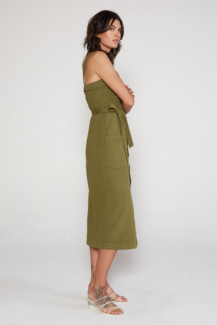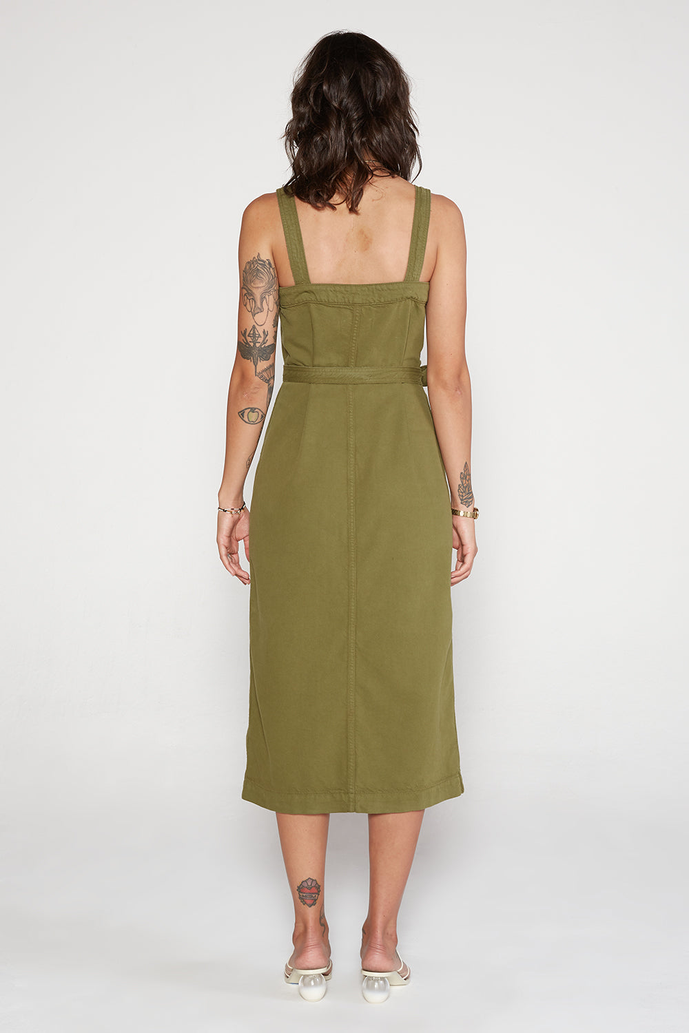 Luisa Olive Green Midi Denim Dress**FINAL SALE**