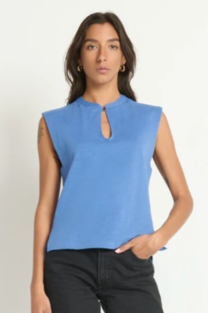 Meet your new favorite tank: the Luna. Made from thicker, structured cotton, it offers a relaxed fit that feels like it was made just for you. The playful button keyhole at the neckline adds a charming touch, while the vibrant Harbor Blue color brightens any outfit. Whether paired with jeans or your comfiest shorts, Luna's ready to become your go-to everyday essential.