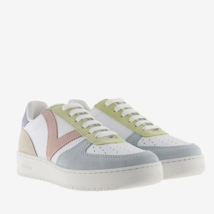 The Madrid Serraje Multicolor Sneaker is the perfect choice for anyone looking to elevate their style. With leather-effect material and colorful split leather overlays, these lightweight and breathable shoes are not only environmentally friendly but also provide a touch of quirkiness to upgrade your athletic game. Made in Spain with a vegetable oil sole, these sneakers offer both comfort and fashion.