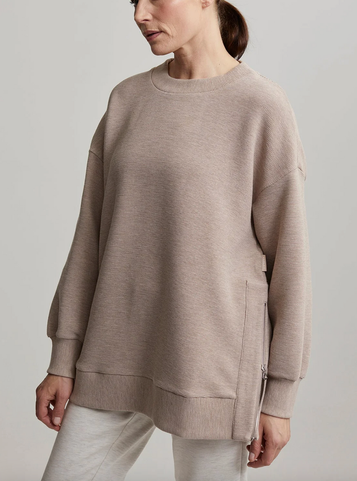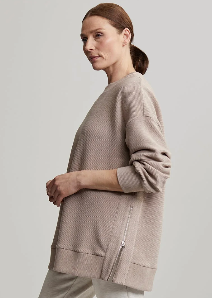 Expertly crafted with structured fine ribbed Ottoman fabric, the Mae Boyfriend Sweatshirt in Taupe Marl offers an oversized fit and chic side zipper detailing. Its versatile design pairs perfectly with leggings for a comfortable and stylish look. The cool taupe brown hue adds a touch of sophistication to any outfit.