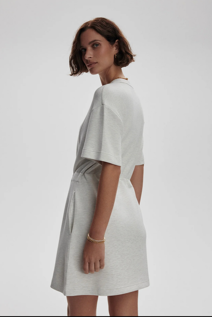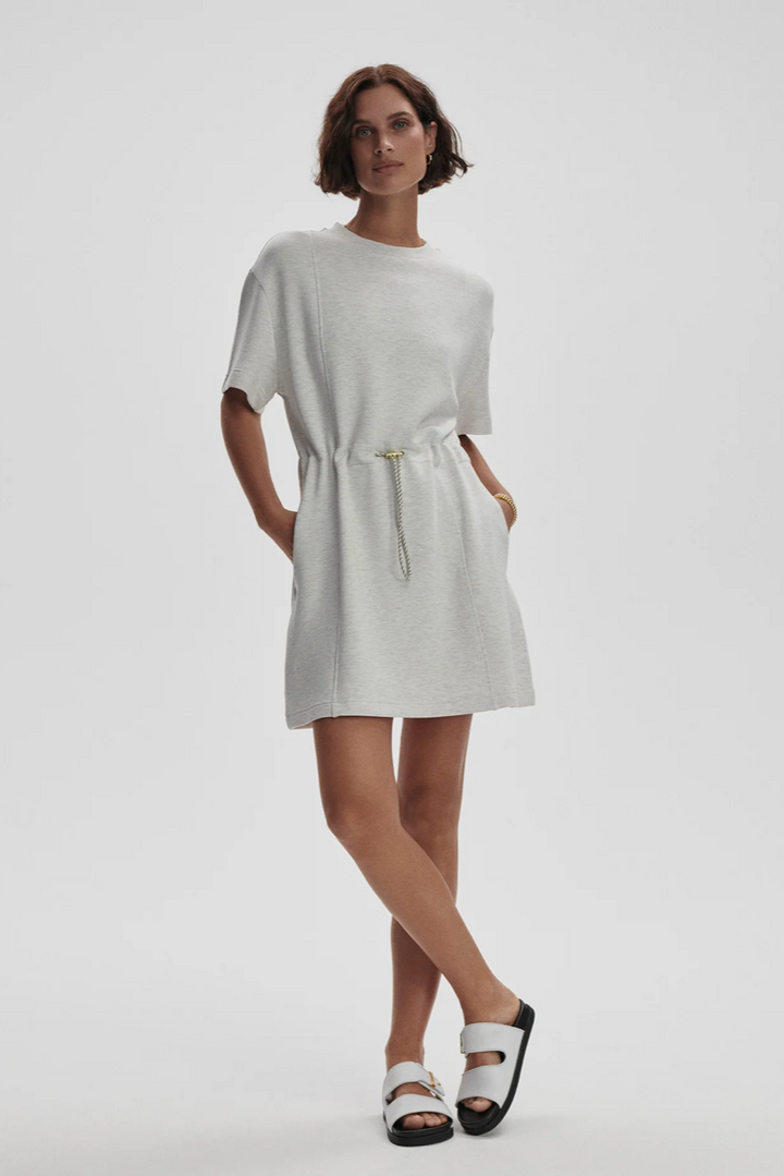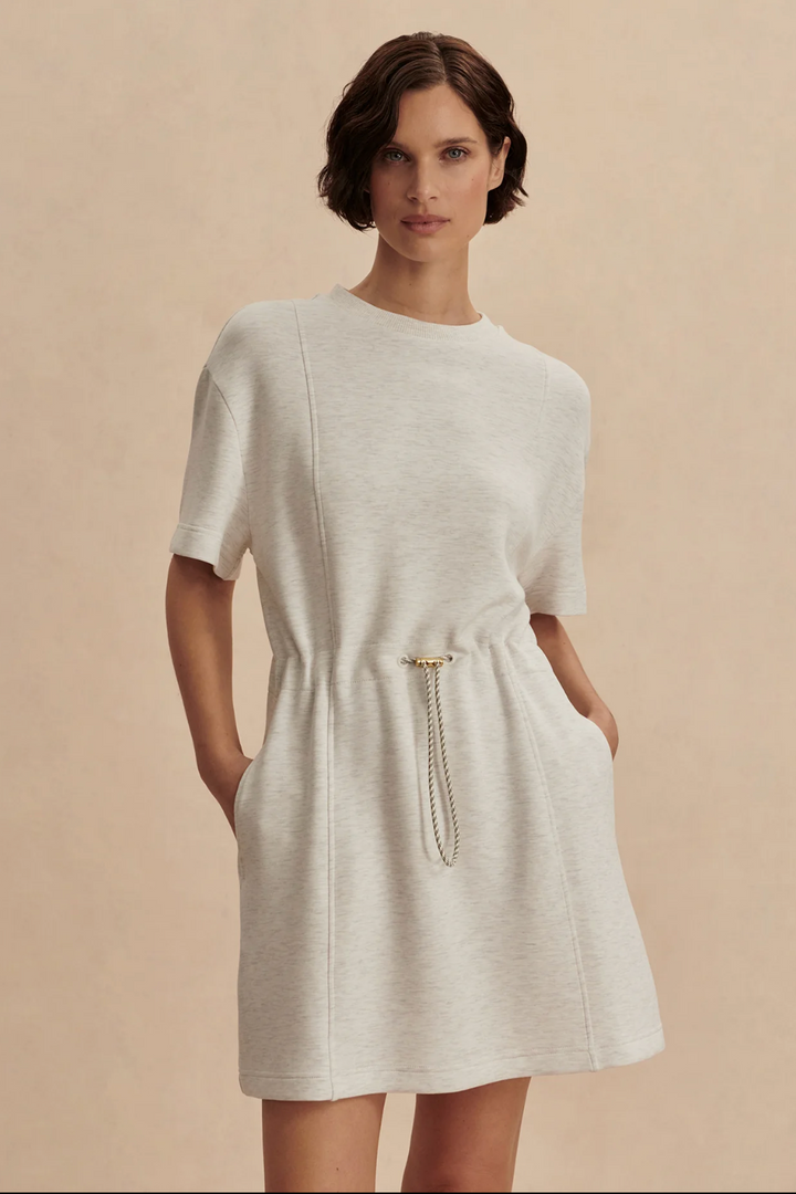 Crafted with our signature DoubleSoft® fabric, the Maple Dress 2.0- Ivory Marl offers ultimate comfort while maintaining a chic, polished look. The crew neckline and cinched waistline, inspired by our bestselling Freya sweat, add a touch of sophistication. Perfect for any occasion, this dress is sure to become a wardrobe staple.
