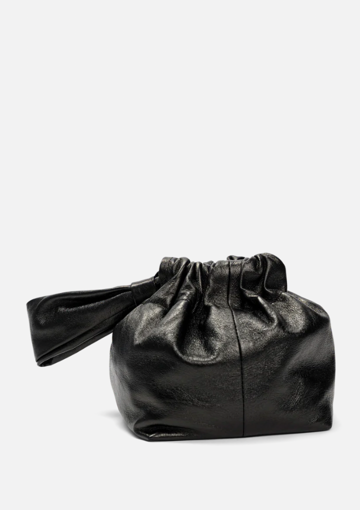 This beautiful Mariposa Bucket Bag captivates with its stunning metallic black hue and soft Italian lambskin leather. Enjoy the chic ruched look that gathers to cleverly close, plus a soft leather handle to carry on your wrist. Whether a special occasion or a spur of the moment adventure, its unique style will ensure you look and feel great!