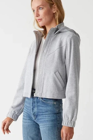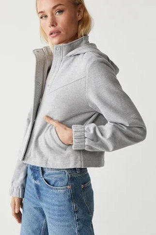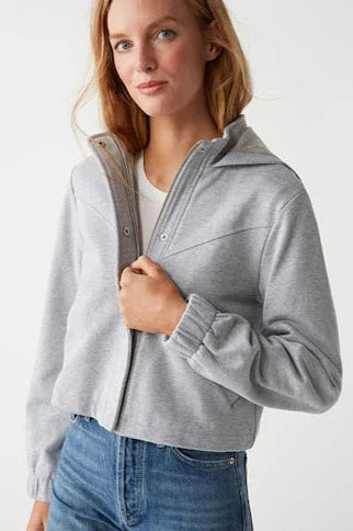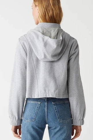 Cover up in style with our Mason Hooded Crop Jacket! The versatile lightweight cotton and elastic cuffs provide a comfortable fit, while the cropped length and zipper front add a touch of modernity. Perfect for any occasion, this jacket in a light grey hue will become your go-to classic piece.