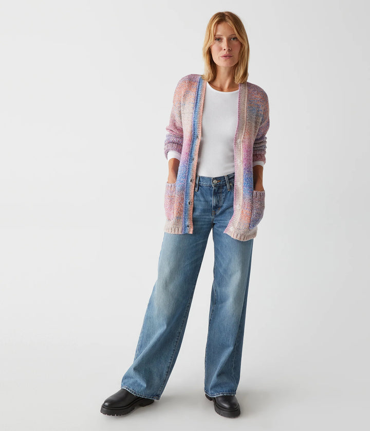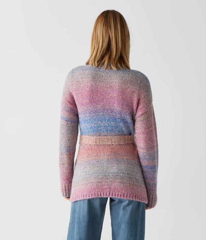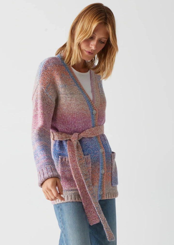 Bring bright, multicolored style to your capsule wardrobe with this Merle Cardigan With Tie. It features a longline design, V-neckline, and button up front. The removable belt and spacedye slub fabric makes it one-of-a-kind. Make an effortless impact with bold style!