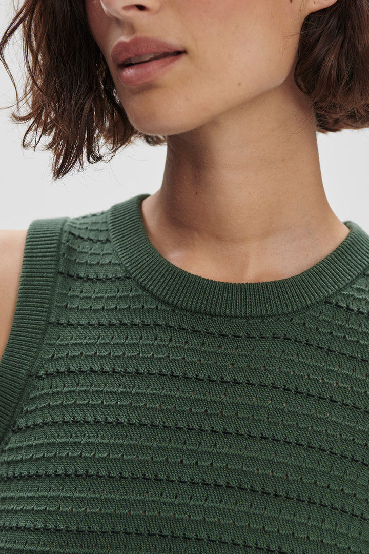 Mindy Contrast Stitch Knit Dress- Cilantro