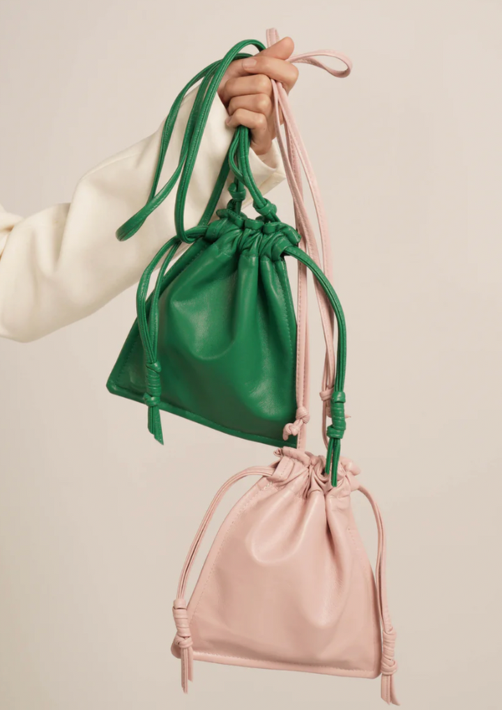 Whether you're running errands or going out for the night, this Mini Bowie Crossbody Bag is the perfect accessory. It's made from soft and subtle lambskin leather, making it comfortable to wear and stylish enough to make a statement. Its drawstring closure and knot details secure the contents, while its perfectly sized interior fits your keys, phone, and card case plus other small daily essentials. Enjoy the versatility of this crossbody bag for all your needs!
