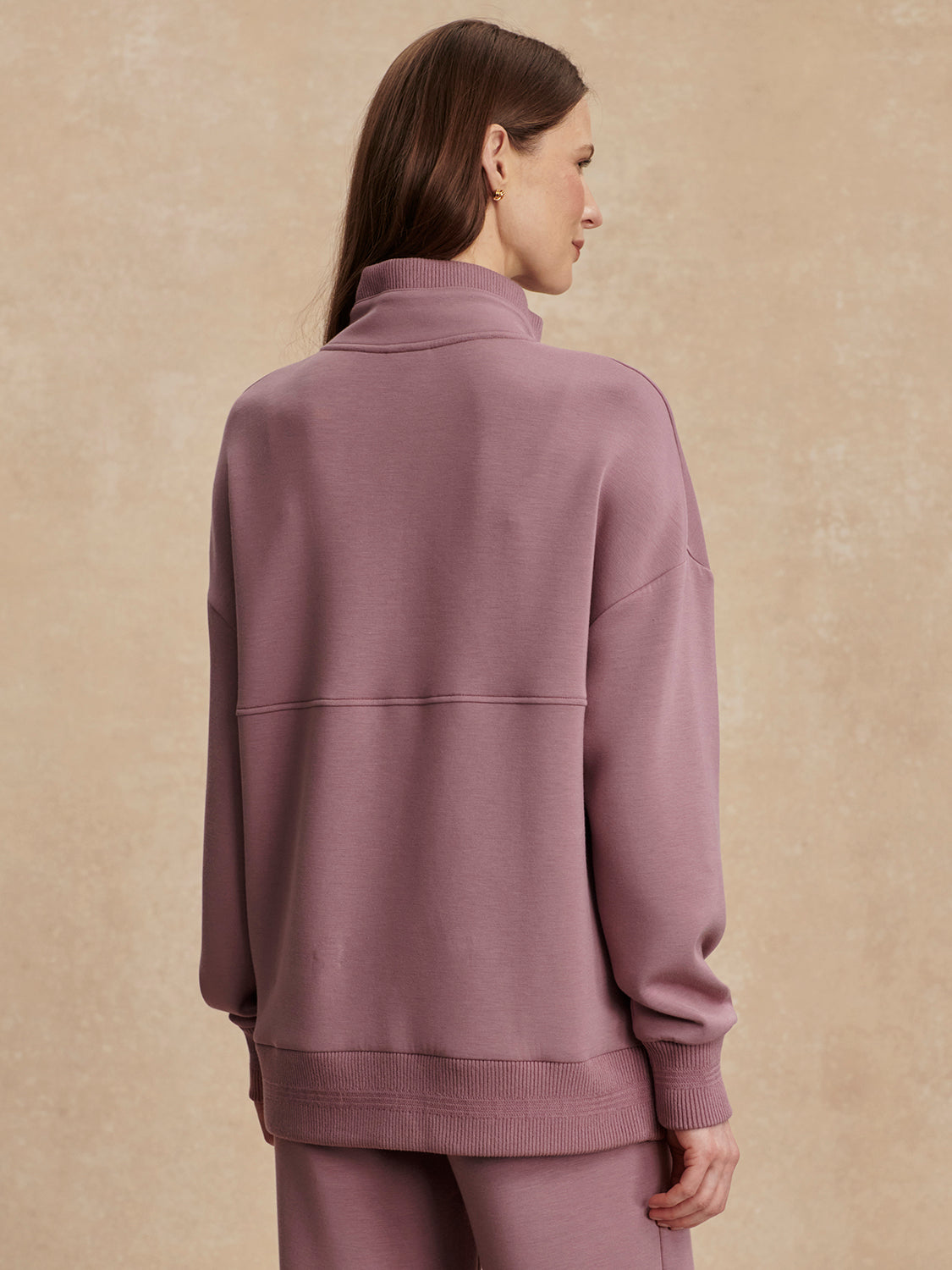 Molly Half Zip Longline Sweatshirt- Wistful Mauve