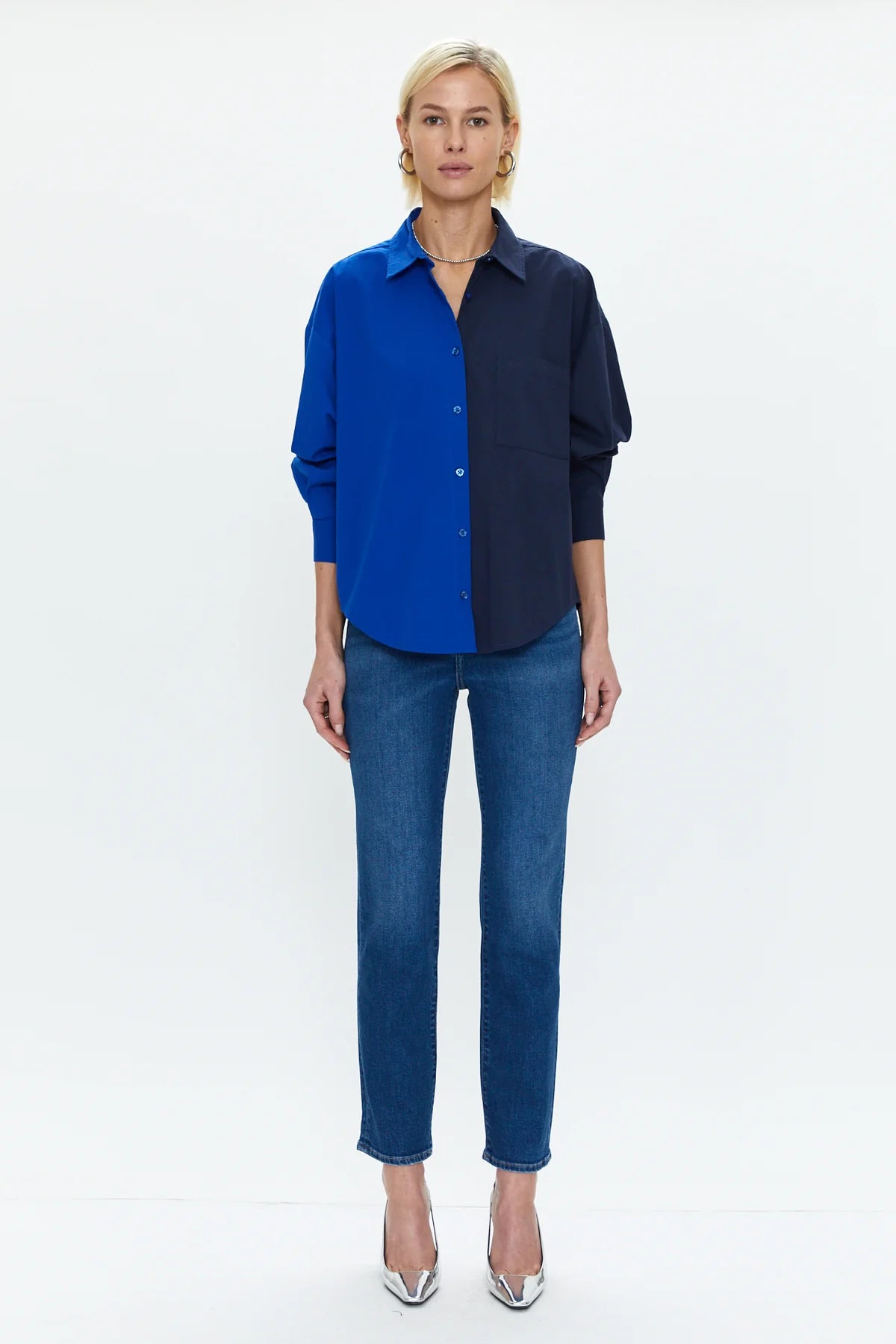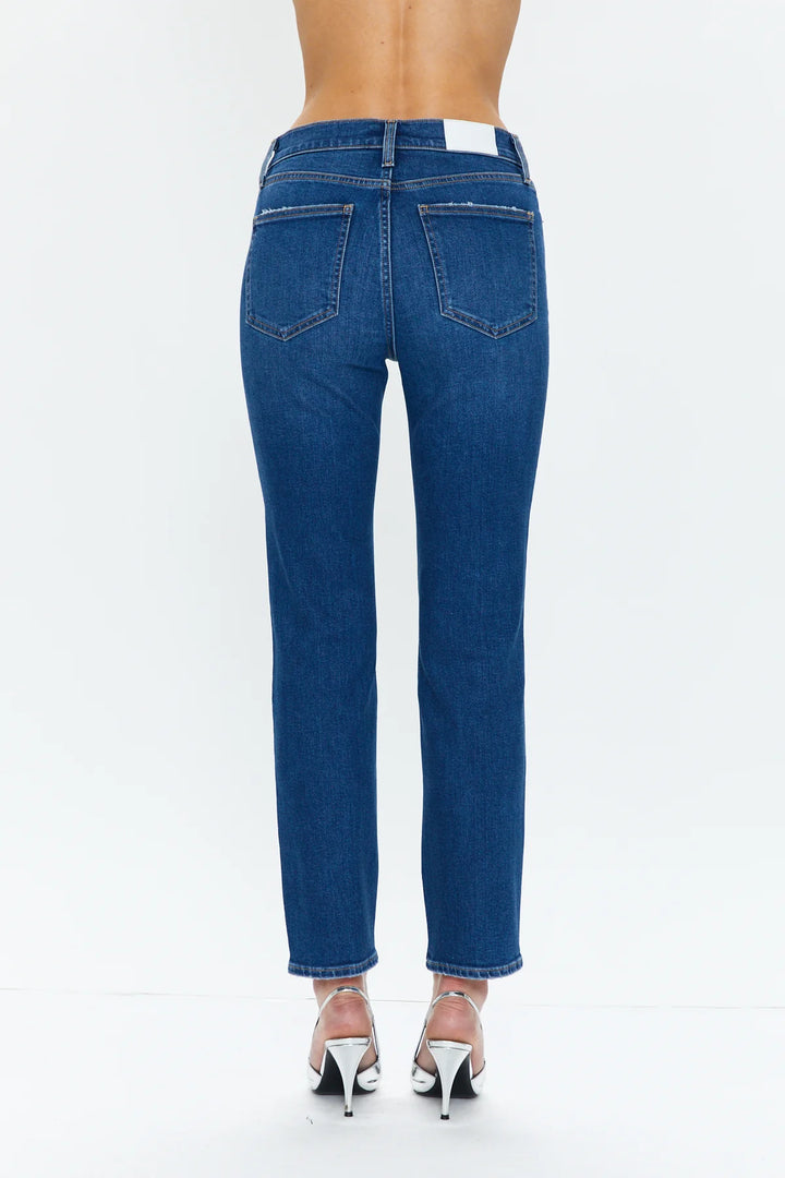 Our Monroe Straight Jean offers the perfect balance of comfort and sophistication. Crafted in a versatile dark wash hue, these straight jean jeans feature a high rise that elongates your legs and a comfort stretch for incredible movement. Experience timeless style in a flattering fit!