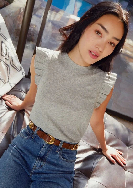 Meet Paulette, the elevated basic tank that can be dressed up or down. With lightly fused flutter sleeves and a new neutral light grey hue, this lightweight cotton tank adds a stylish touch to any outfit. Perfect for those who like to keep things light and breezy.