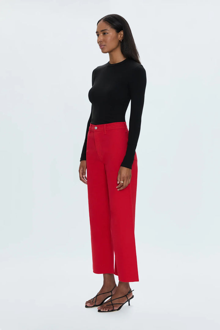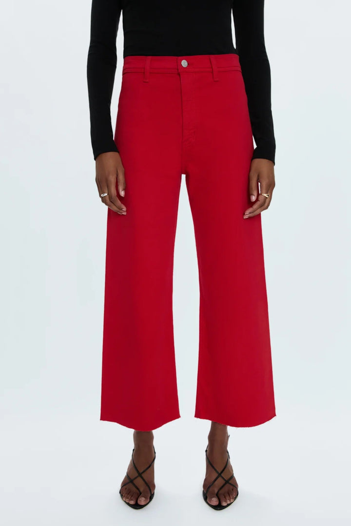 A favorite here at Illie & Co.—the Penny wide leg crop in a new bright red wash! Featuring a high-wasted, wide leg silhouette, and plenty of stretch, the Pennys will be your go-to pants for when you want to add a little brightness to your wardrobe.