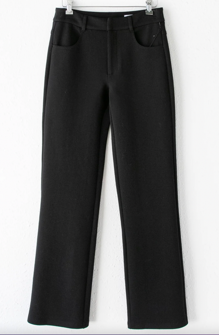 Our Philly Ponti trousers are the perfect combination of comfort and style. Crafted with a high waist and subtle flare, these trousers will enhance any look. Faux front pockets, a slightly cropped length, and a classic black hue combine to create a timeless wardrobe staple. Be comfortable and stylish in every situation!