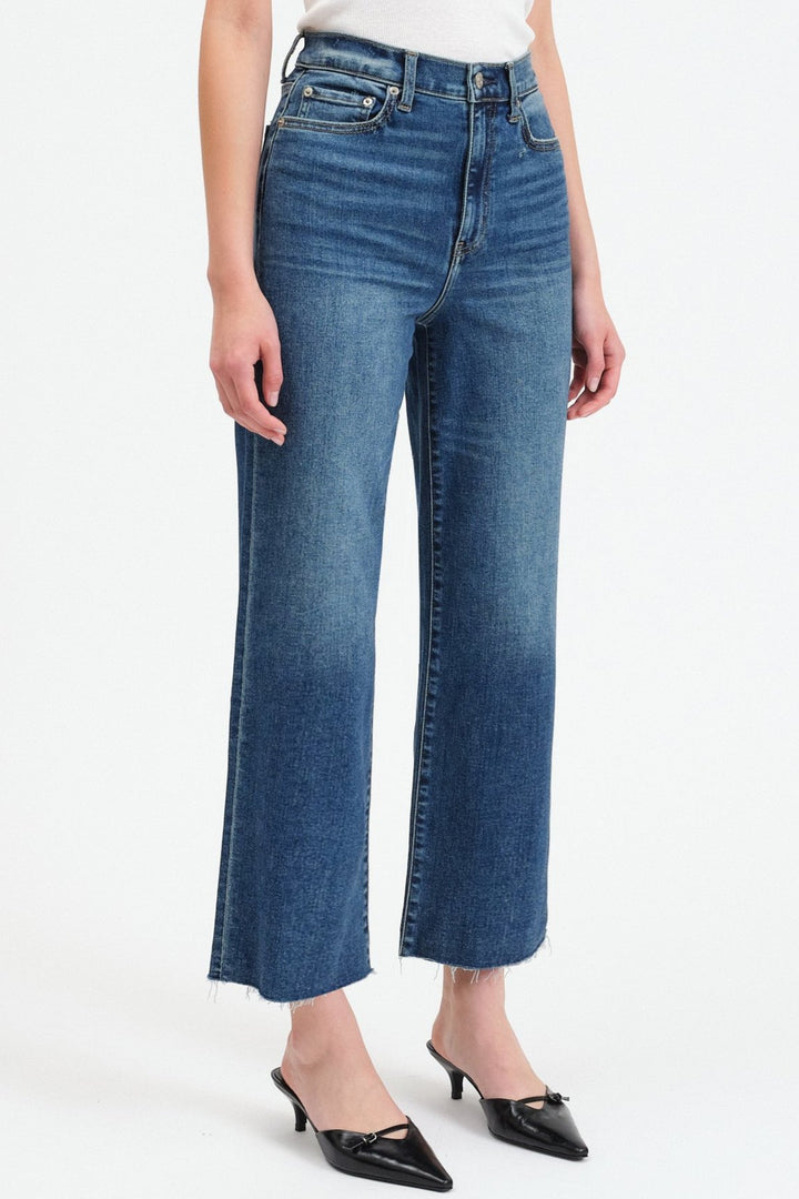 Get ready to elevate your style game with the Pleaser Wide Leg Ankle- Uptown! Made with super comfortable stretch and a high rise, these medium wash lightweight denim jeans are perfect for day to night wear. Plus, the raw hemline adds a touch of edginess to your look. Upgrade your wardrobe with these must-have jeans!