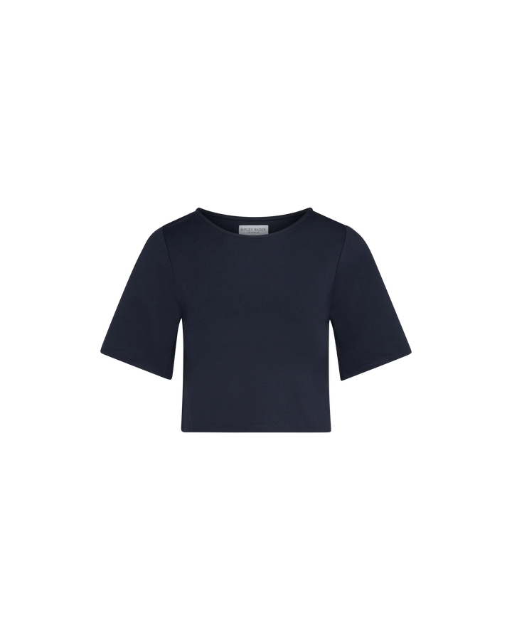 Ponte Knit Short Sleeve Top- Navy