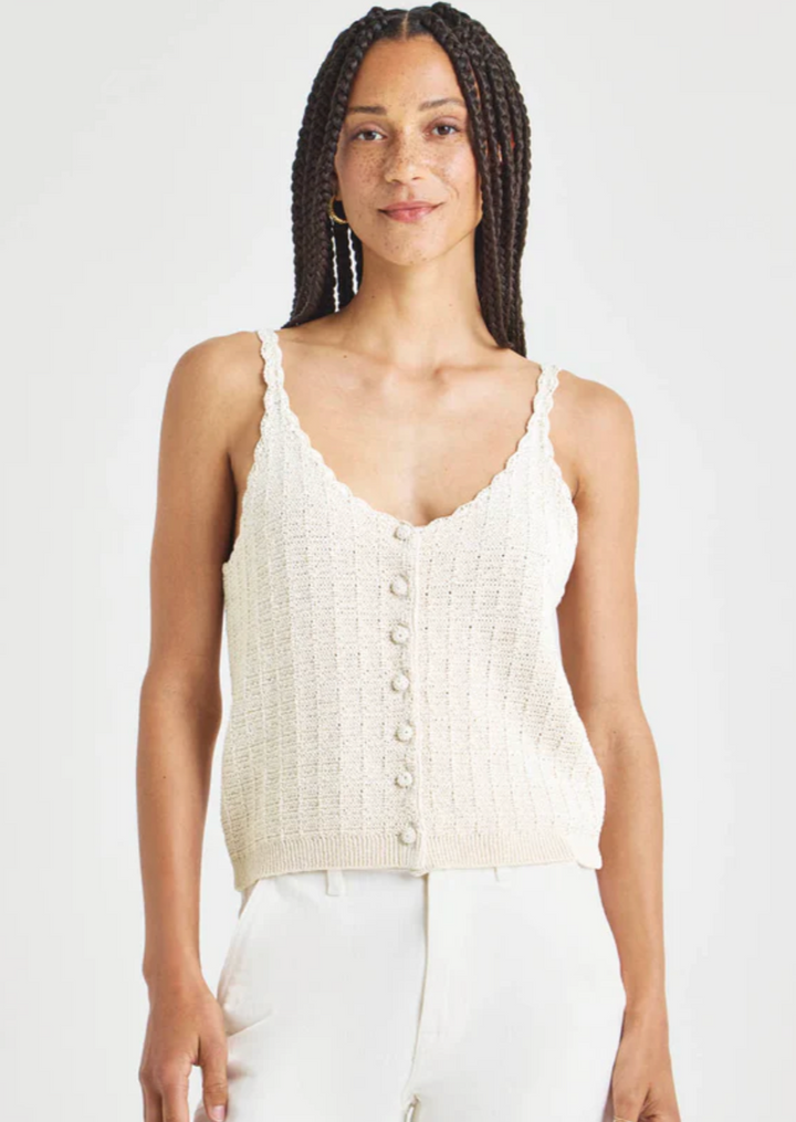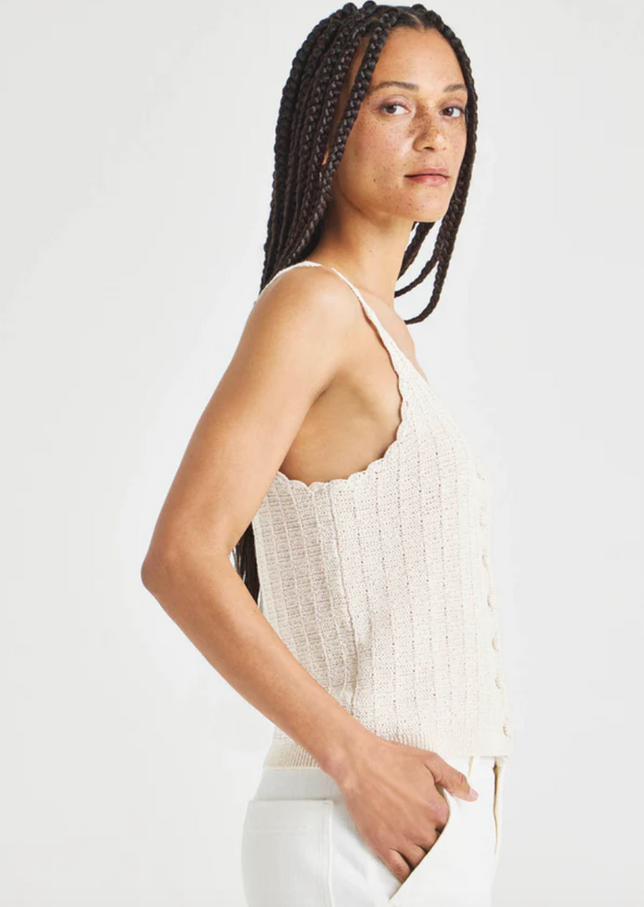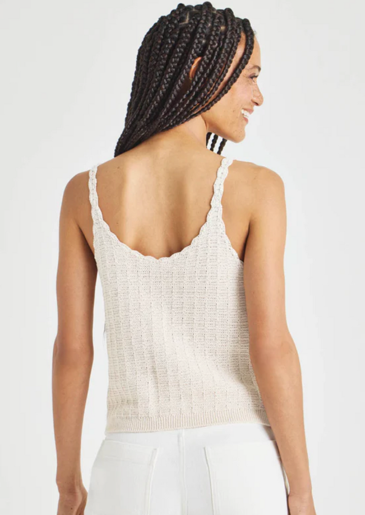 Scalloped edges add a sweet touch to this sweater tank—and any summer wardrobe. We made it with a lightweight linen blend, making it the perfect pick for warm days.