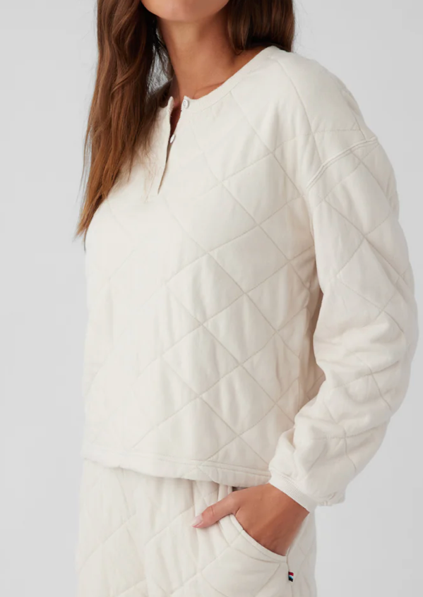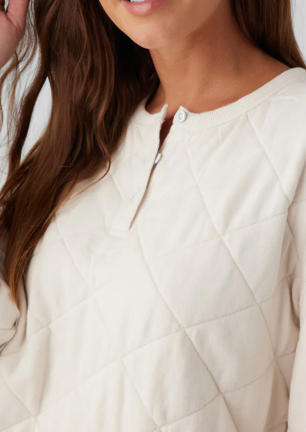 Quilted Long Sleeve Henley Sweatshirt- Ecru