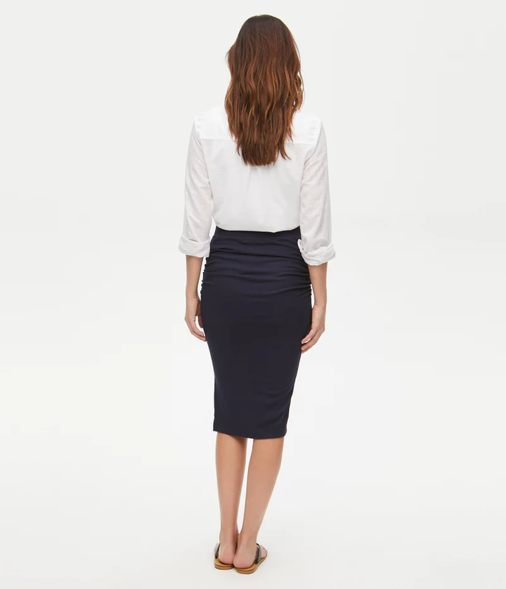 Rae Ribbed Midi Skirt- Navy