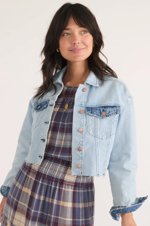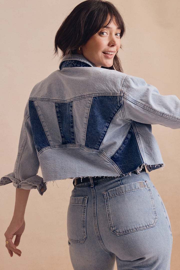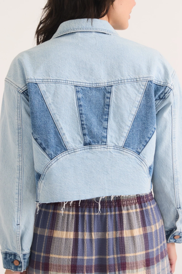 The Ray Denim Jacket is a must-have for any fashion-forward individual. Inspired by the California sun, this jacket features a slightly cropped and boxy design with perfectly washed denim panels, creating a cool contrast. The sun detail on the back adds a unique touch to this versatile piece, making it perfect for layering over dresses, pants, or tops. Elevate your style with this go-to jacket.