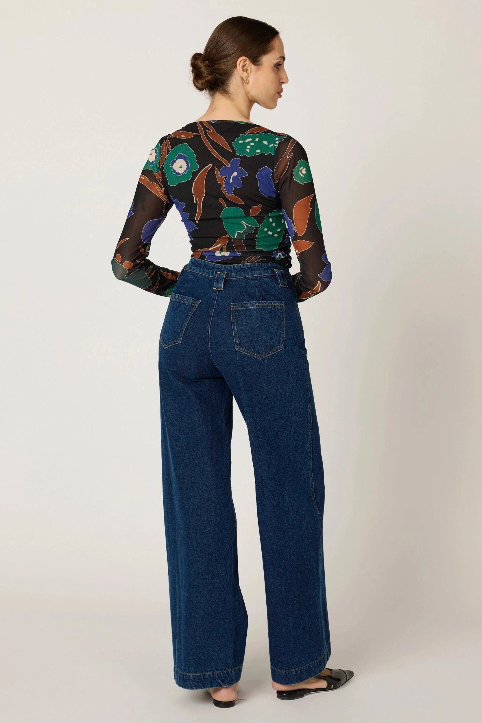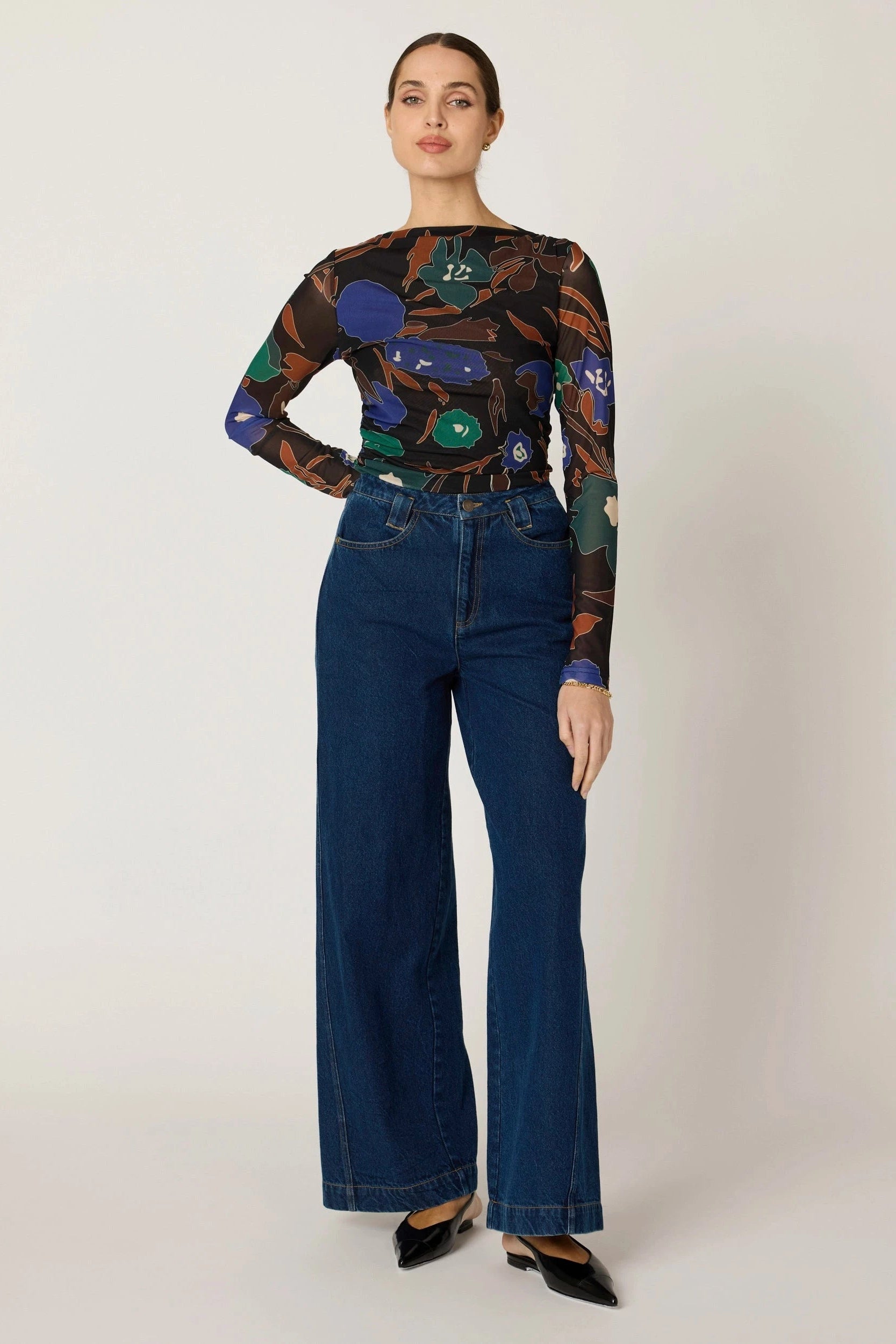 Meet your new fall favorite—the Remy Top in our stunning Mariposa print. Ethically handmade in India, this bestseller features a chic high neckline paired with delicate shirring at the shoulders and waist for a flattering, figure-hugging fit. Crafted from a luxe blend of 88% nylon and 12% elastane, it's designed to move with you while celebrating your unique silhouette. Dark florals never looked so good.