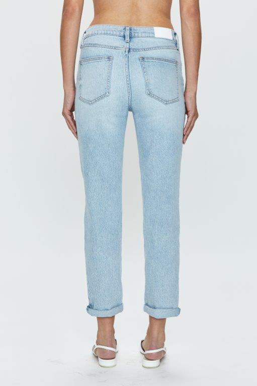 Expertly crafted with a mid-rise fit and straight leg, the Riley Jeans in Saint Vincent wash are perfect for any occasion. The light wash and rolled hem give a casual touch, while the stretch fabric allows for comfortable wear. Versatile for any style, pair with heels or sneakers for a classic look.