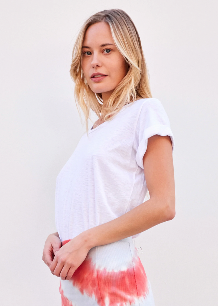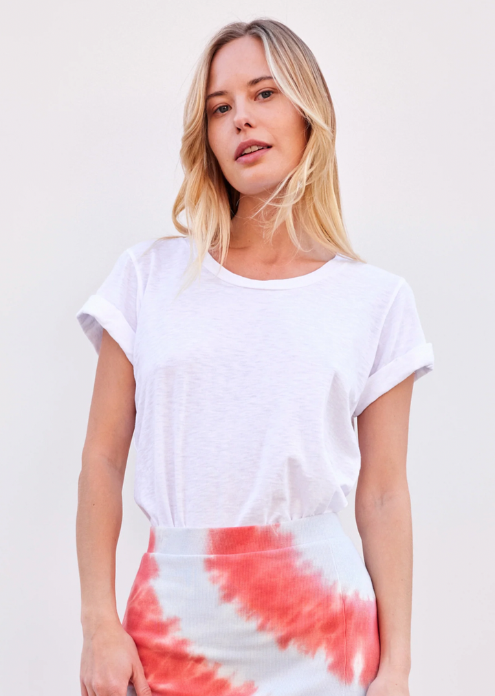 Keep your wardrobe effortlessly stylish with our Rolled Sleeve Tee in Optic White. Made from lightweight supima cotton, this relaxed fit tee features rolled short sleeves and a classic crew neckline. Perfect for any occasion, this tee is a must-have for your capsule wardrobe.