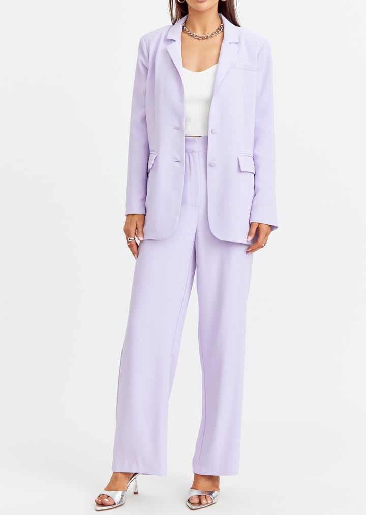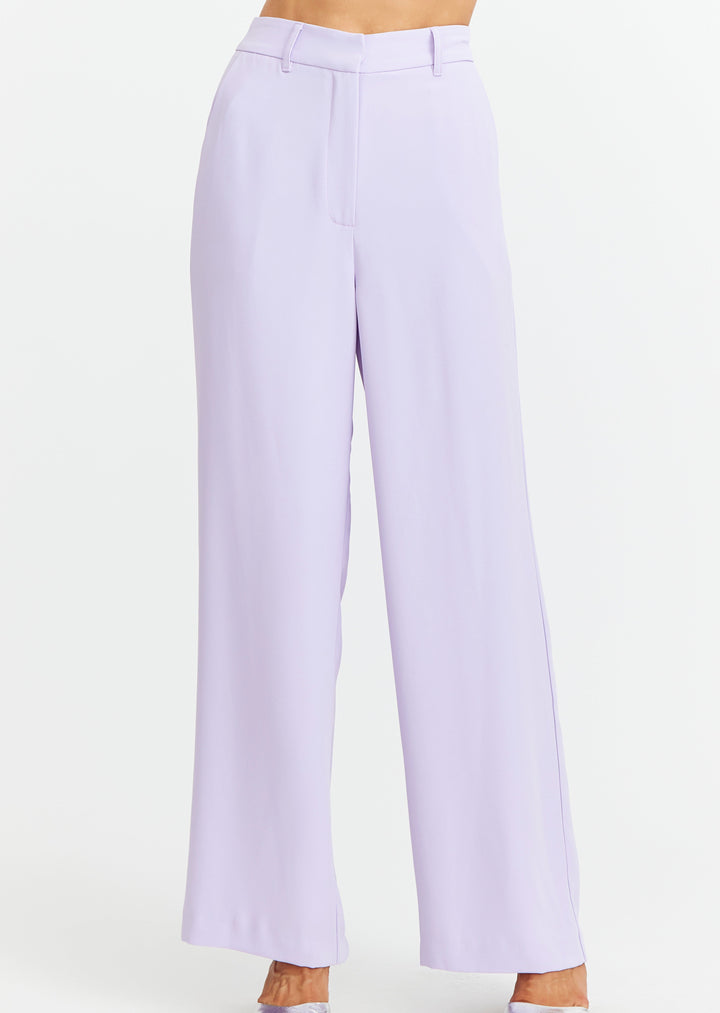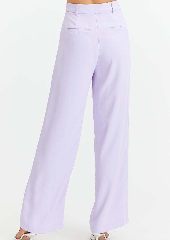 These lightweight, straight leg trousers in a soft lilac purple color are perfect for transitioning from day to night. Wear with the matching blazer for a complete look. The high rise waist adds both comfort and style.