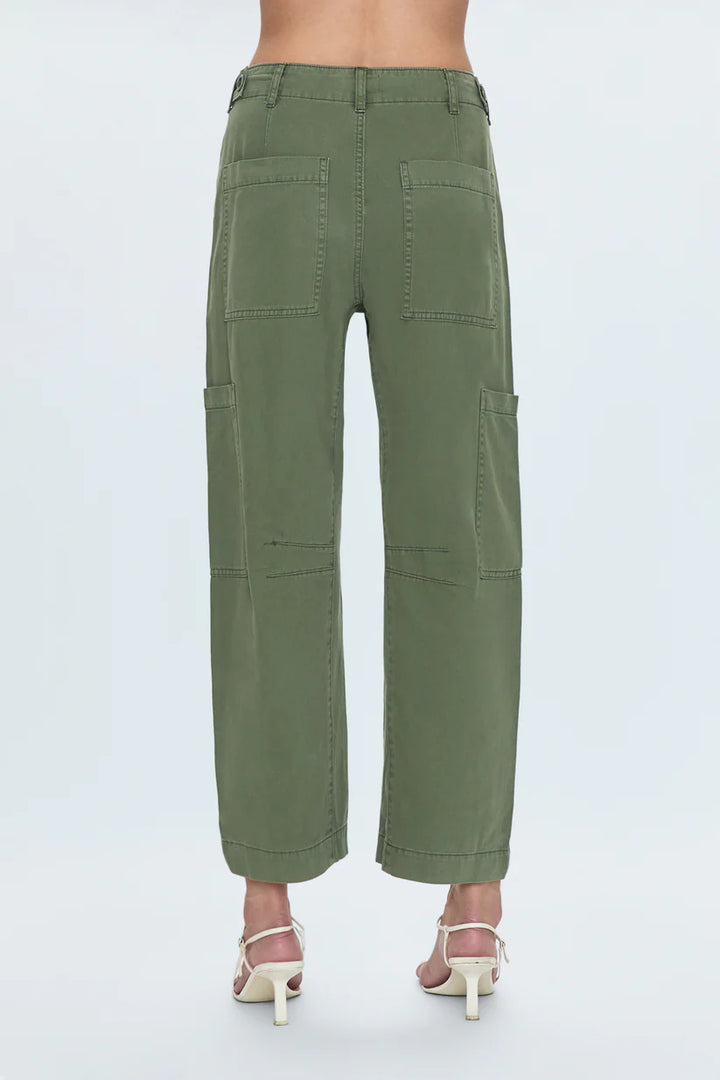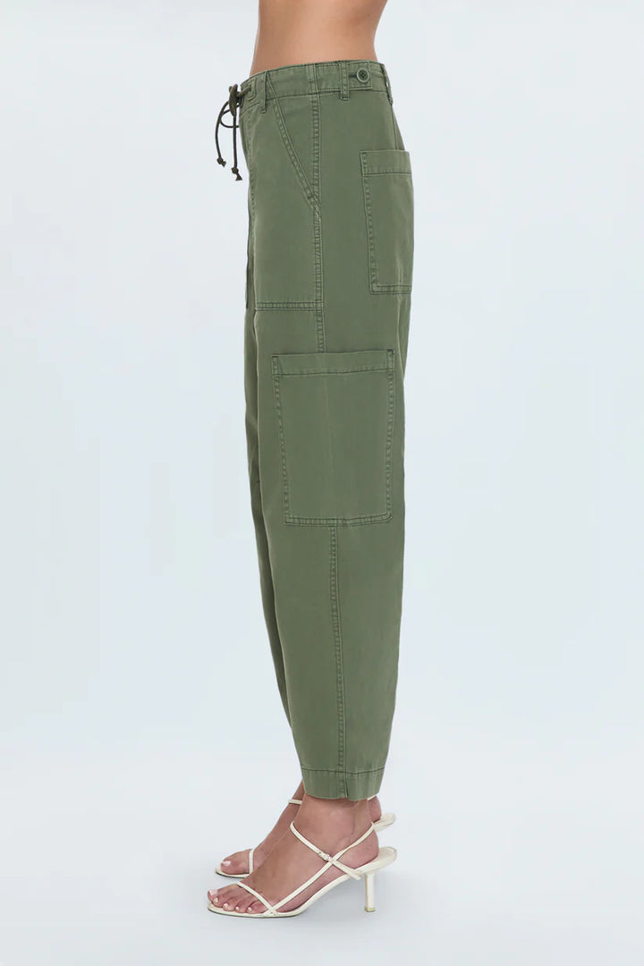 Upgrade your off-duty wardrobe with the Sabrina Bowed Trousers. These relaxed yet refined pants feature a unique curved leg shape for a modern silhouette. Made from durable twill and featuring a hidden waistband tie for a customizable fit, these pants offer both style and functionality with their strategic utility pockets.