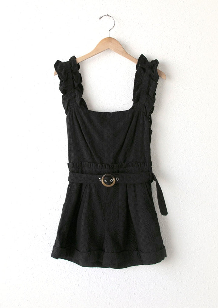 Sandi Embroidered Eyelet Scrunchie Strap Romper- Black **Final Sale**