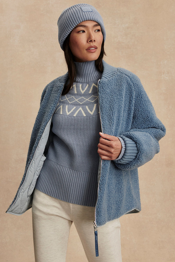 Layer up with the Serina Reversible Quilt Jacket, your new go-to for effortless style. Rock the cozy fleece side for ultimate comfort, then flip it to the quilted nylon for a sleek, polished look—two jackets in one. This bomber-style essential features gorgeous tonal soft blue hues that transition seamlessly from casual hangouts to weekend adventures. Whether you're chasing the perfect vibe or just can't decide, reversibility means you're always ready for anything.