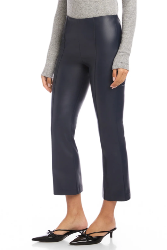 Step into stylish comfort with the Sigourney Pintuck Pants in navy. Crafted from smooth faux leather, these pants feature front pintuck seams and a subtly flared cropped leg that adds a playful twist to any outfit. The elastic waistband ensures a comfy fit, making them perfect for effortlessly transitioning from day to night with a polished edge.