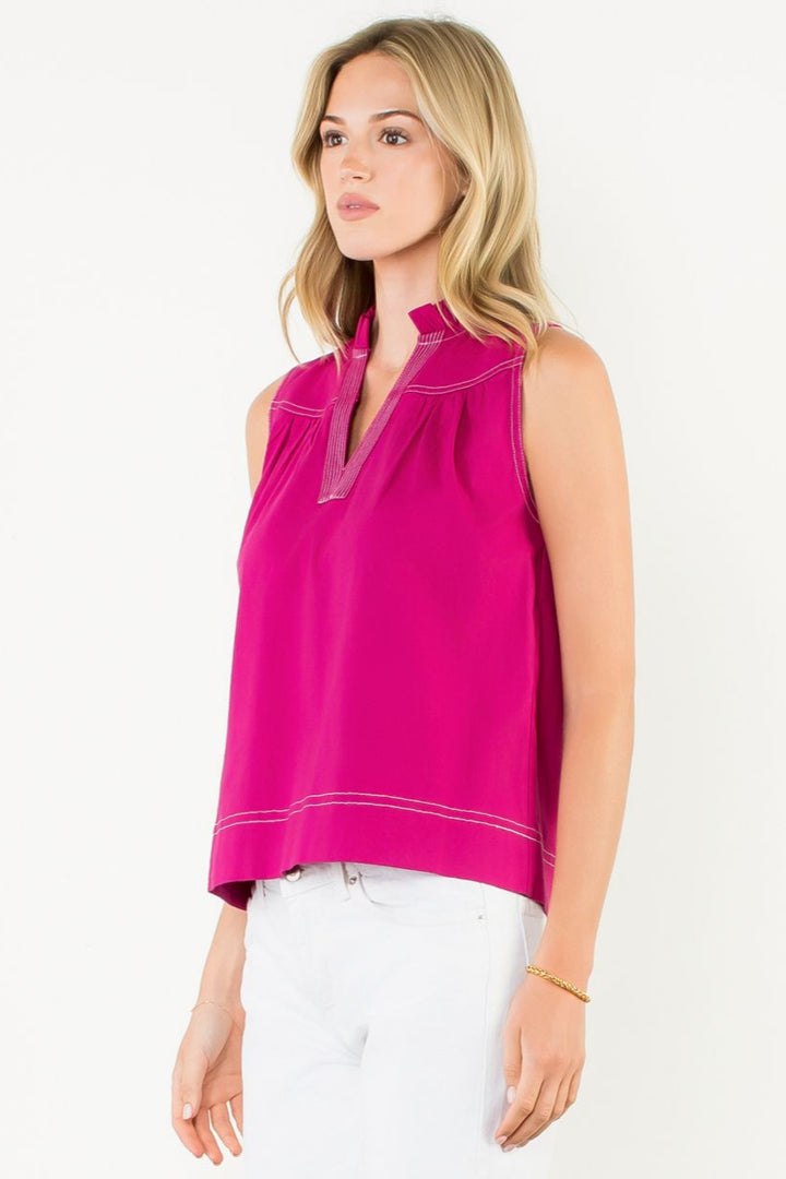 Sleeveless V-Neck Top—Fuschia