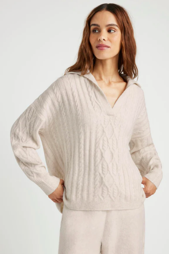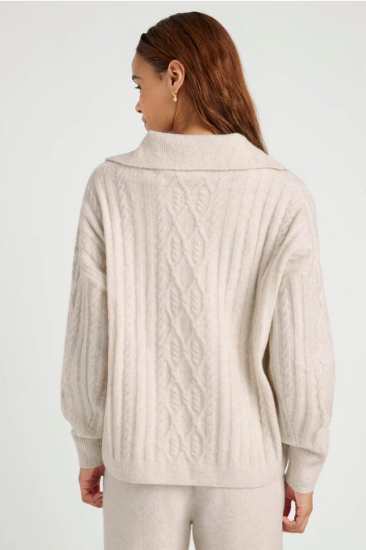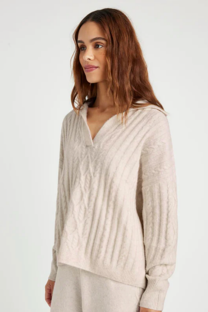 Stassi Cable Polo Sweater- Oat **Final Sale**