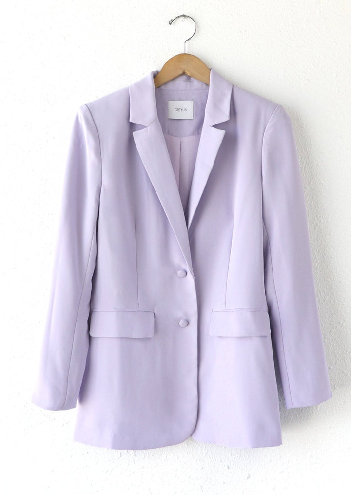 Introduce the Stella Blazer in Lilac, the perfect color to freshen your winter and spring wardrobe. With a lightweight design, double button closure, and hip length, this blazer is versatile and stylish. Take your look to the next level by pairing it with the matching wide leg trouser.