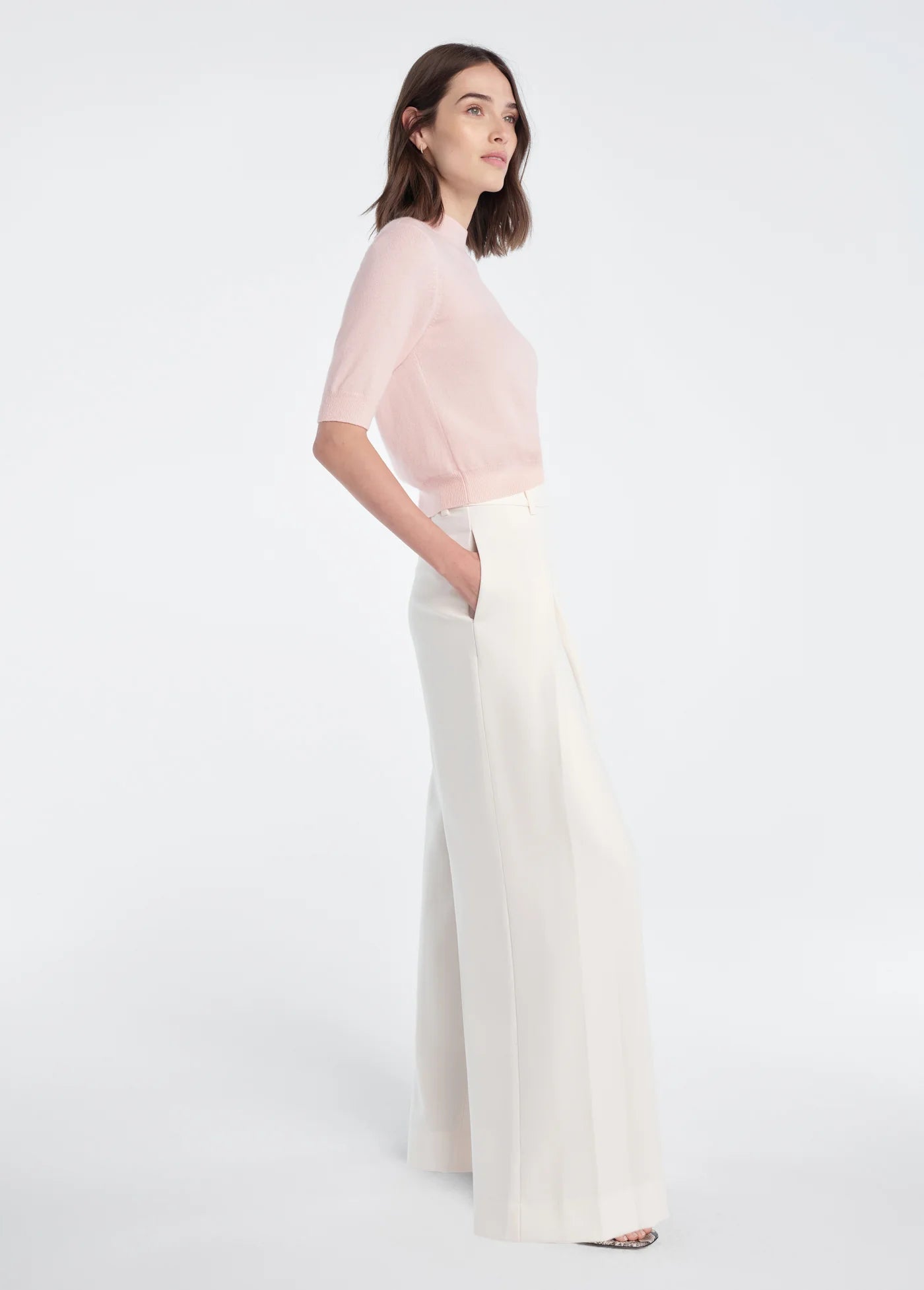 The Bonnie Top in Pale Pink delivers understated luxury for your everyday rotation. Crafted from premium cashmere, this refined piece features a classic silhouette with half-length sleeves and ribbed hems that anchor the design. Versatile across three seasons, it pairs effortlessly with denim or tailored pieces, making it the foundational layer your wardrobe has been waiting for.