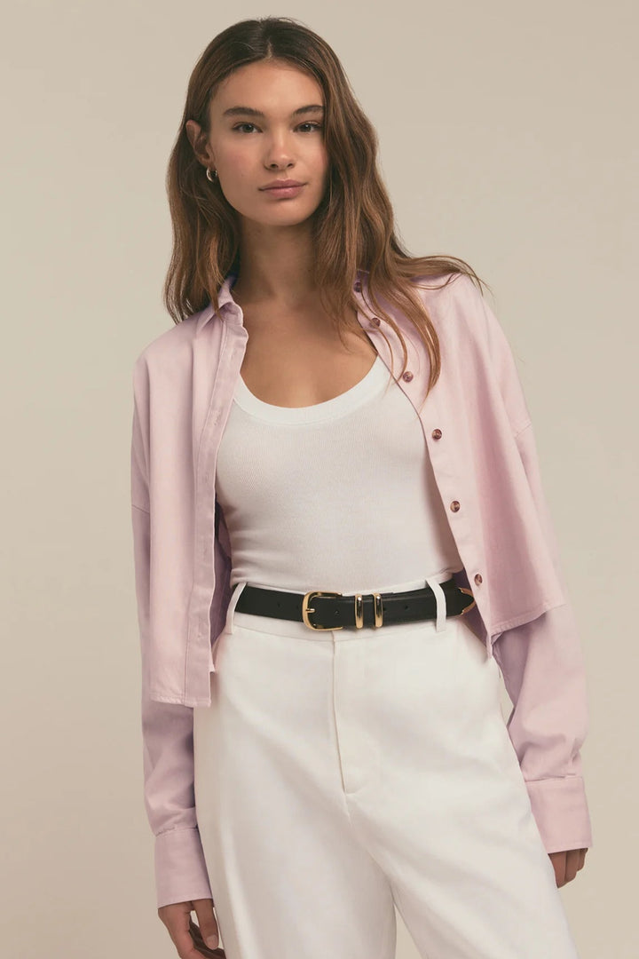 The Crop Ex-Boyfriend Shirt- Pale Pink