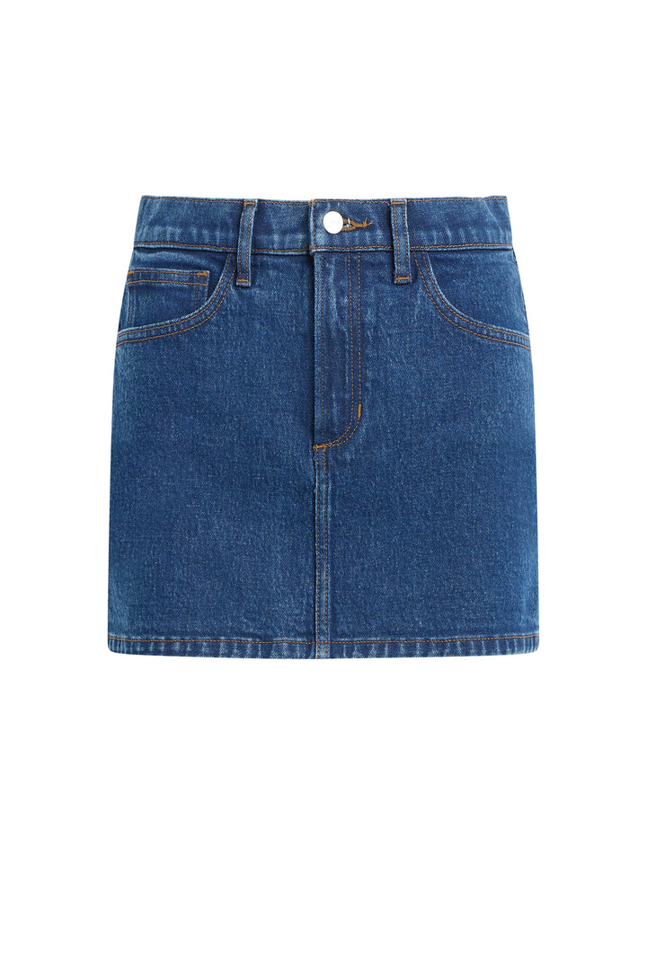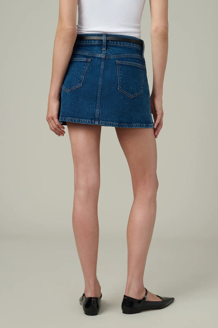 Expertly crafted and designed for comfort, the Denim Micro Mini Skirt- Crescendo is the perfect addition to your wardrobe. The mini-length sits below the natural waist and is fitted at the hips, giving you a flattering and stylish look. With a mid-waisted fit, zip fly, and 5-pocket styling, this skirt is both practical and fashionable. Elevate your style with the Crescendo Micro Mini Skirt.