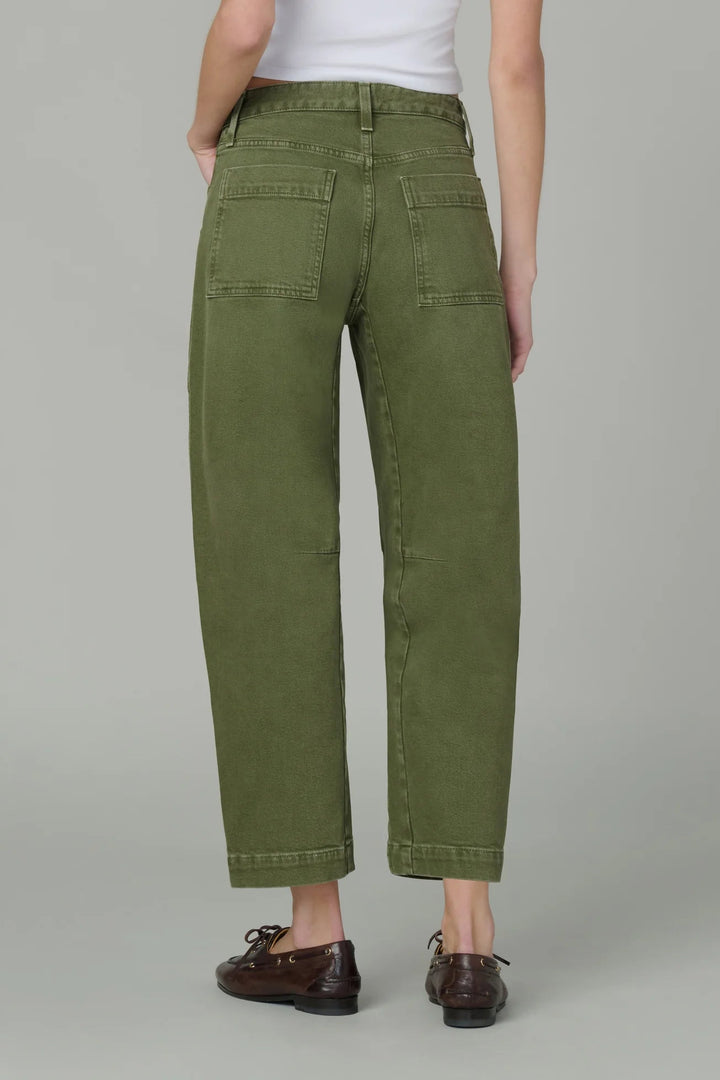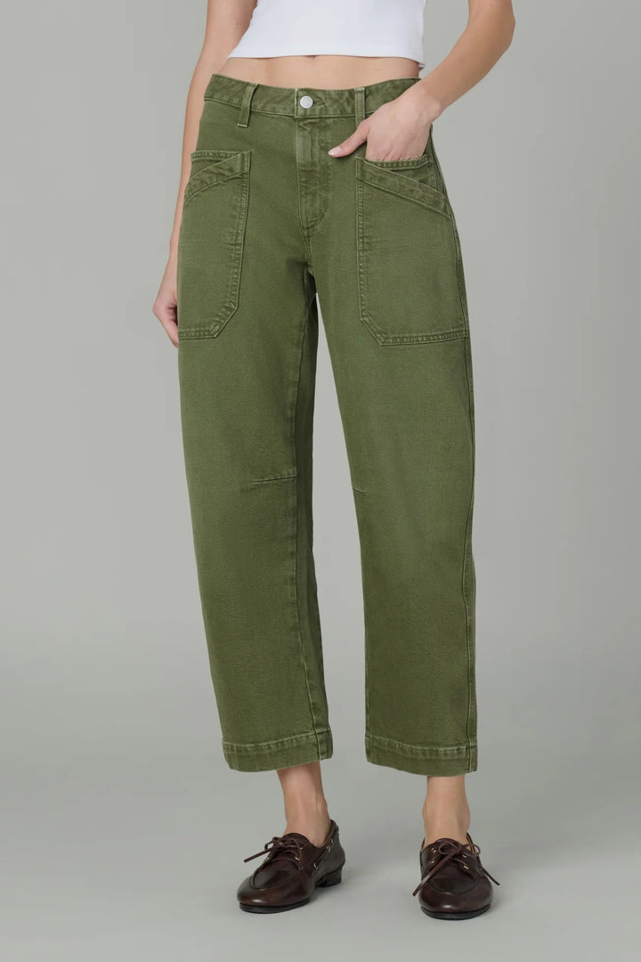 The Double Pocket Barrel Jean in Winter Moss brings a fresh twist to your denim collection. With a mid-rise waist sitting comfortably at 10 inches, these jeans offer a relaxed fit through the waist and hips, giving you all the room to move and groove. The modest barrel-shaped leg hits right at the ankle, perfect for showing off your favorite kicks. Plus, patch front pockets add a fun, functional detail. Cozy, cool, and ready to brighten your look this season!