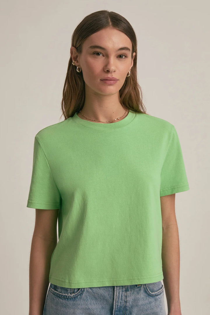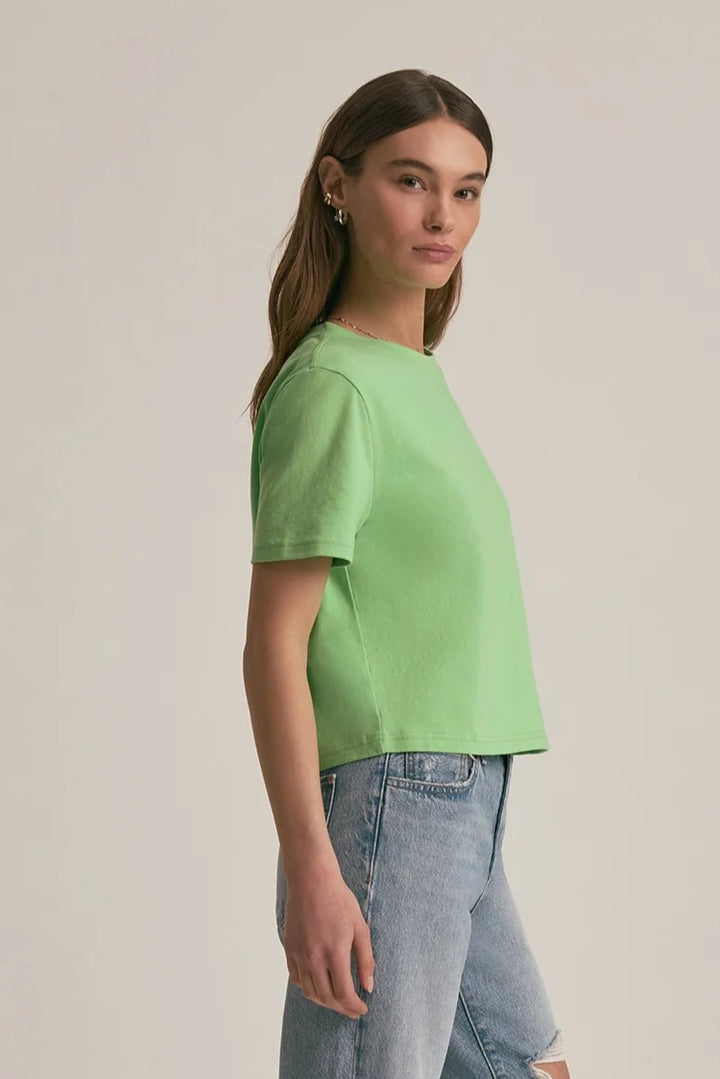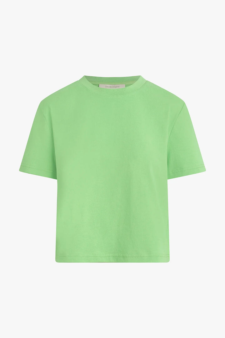 The Favorite T-Shirt in bright Kiwi Green brings vintage vibes with its classic crewneck, short sleeves, and comfy boxy fit. Made from 100% organic cotton, it’s soft on your skin and kind to the planet—because looking good should feel good too!