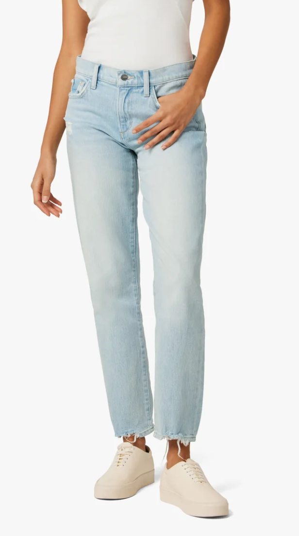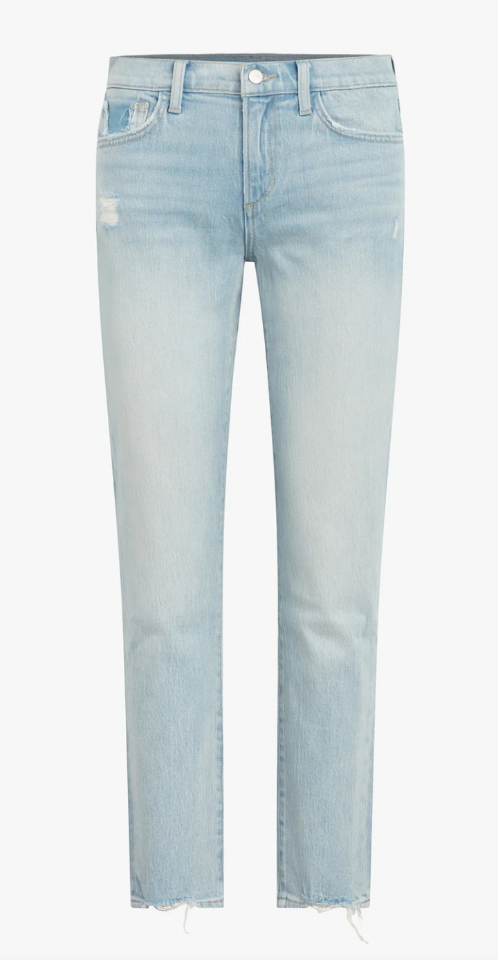 We love the lighter wash of these mid-rise straight cigarette jeans. This denim has the perfect amount of stretch so they move with you but will not sag throughout the day. Slight distressing at the hemline and pockets. Pair with any basic tank or tee for an easy weekend style. They also look great when paired with a blazer and heels for a night out. 28" inseam