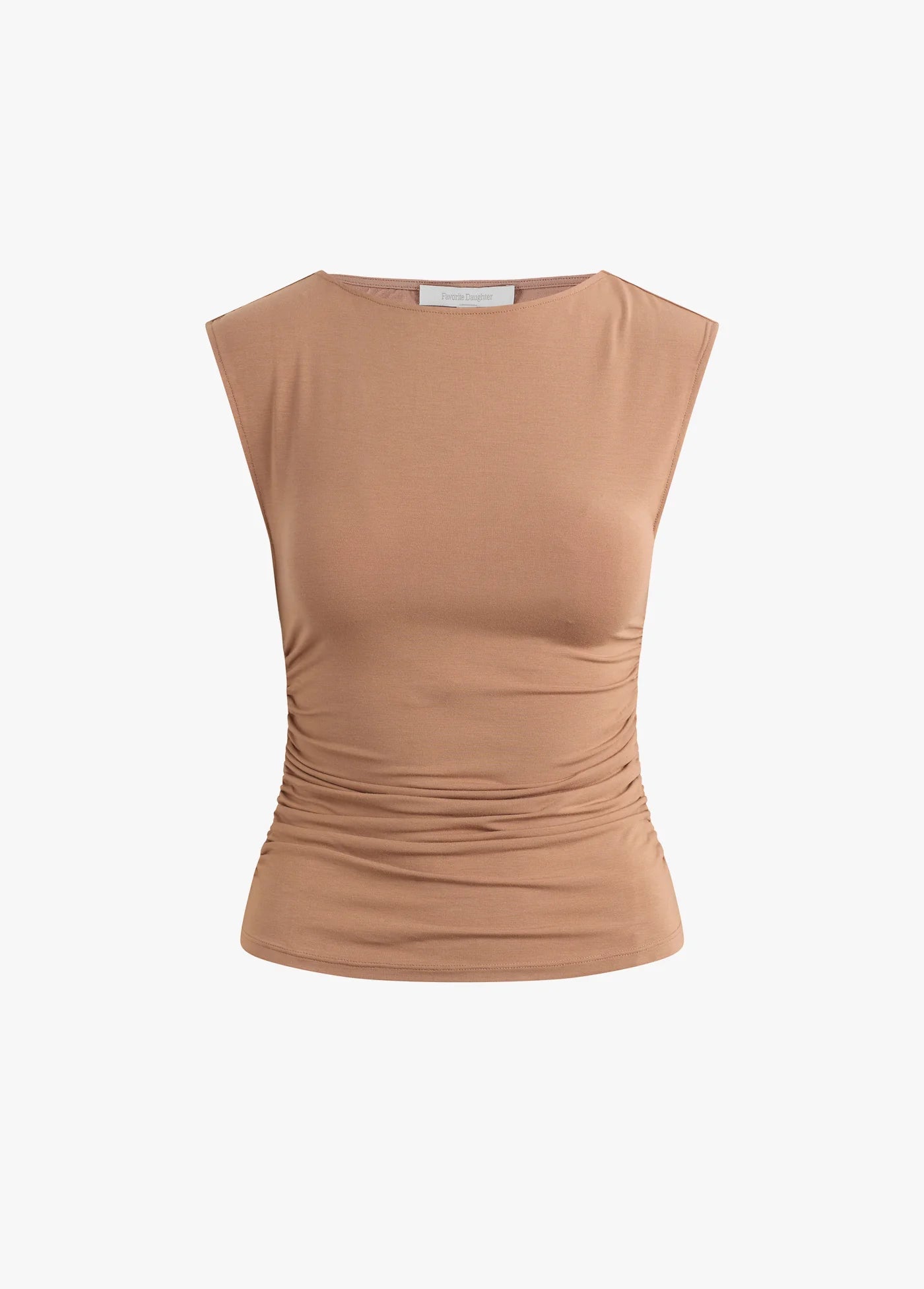 Endless styling possibilities await with this versatile essential. Featuring a flattering wide shoulder cut and subtle side ruching that sculpts your silhouette, The Limitless Top is crafted from buttery soft modal jersey that feels as good as it looks. Dress it up, dress it down—this mocha beauty adapts to your mood and your wardrobe. Pure comfort meets pure style.