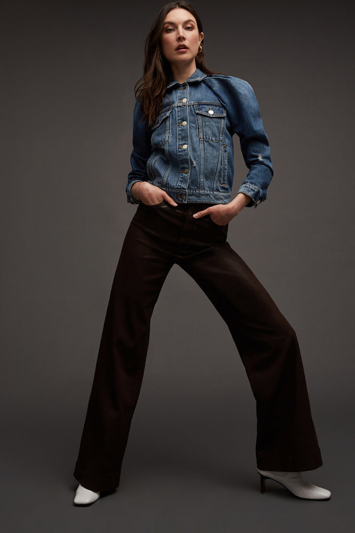 Our Mia Coated Wide Leg is a showstopper! Move with ease in high-rise, wide leg jeans coated with a dark chocolate brown sheen. Dress them up or down for any occasion- you'll feel comfortable and look amazing!