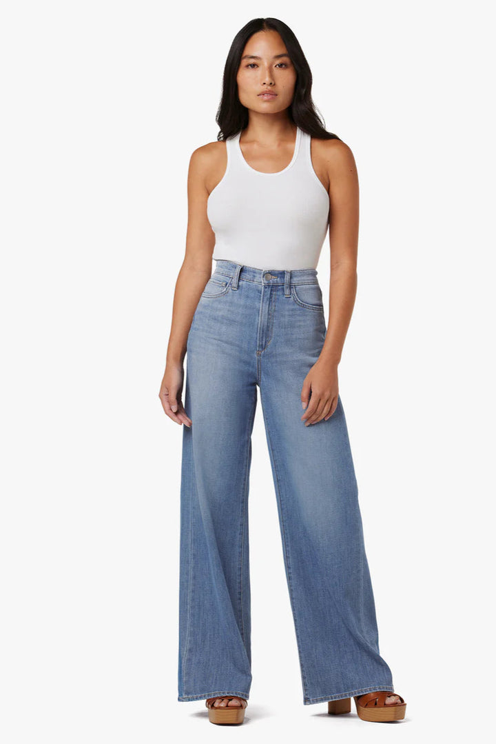 The expertly designed Mia High Rise Wide Leg jeans provide the perfect balance of style and comfort. Crafted with our Weightless denim, these jeans offer stretch for all-day ease. The deep indigo Hot Shot wash is achieved through stone enzyme and whiskering techniques, creating a sophisticated look. With a high-rise of 11.5" and inseam of 30", these jeans effortlessly flatter and elongate your figure.