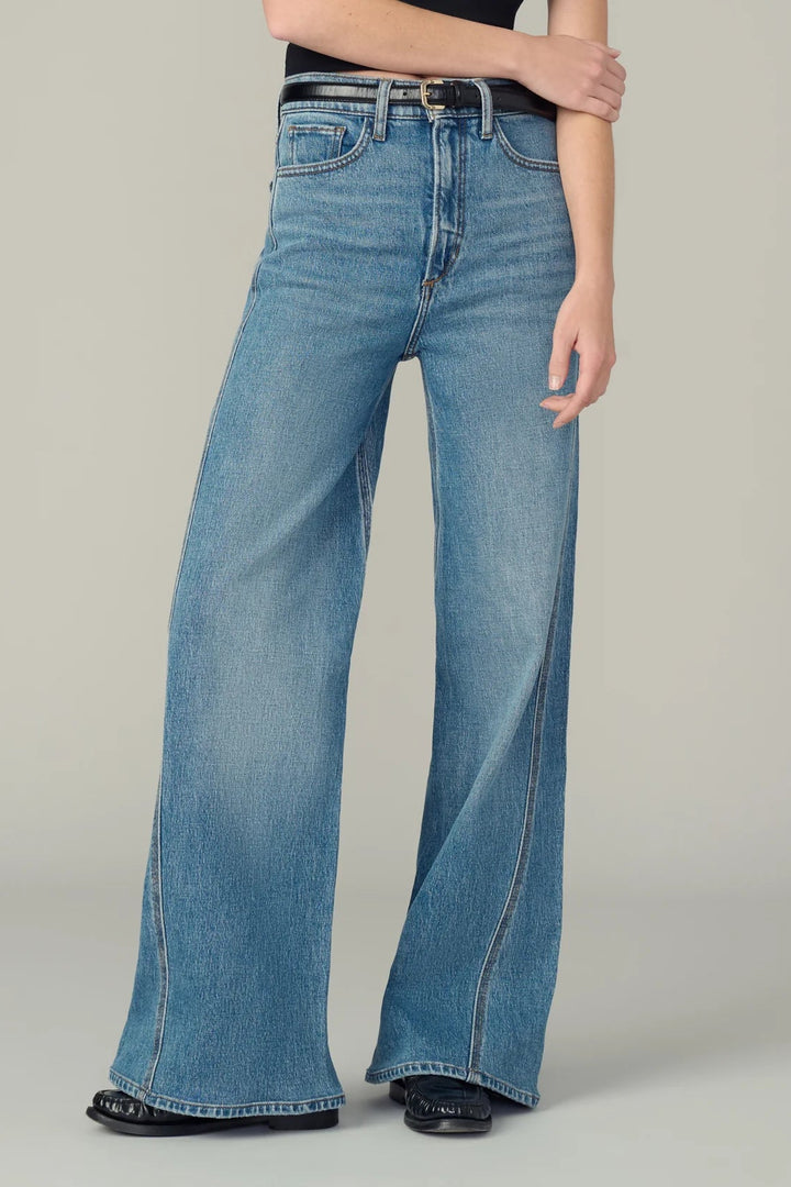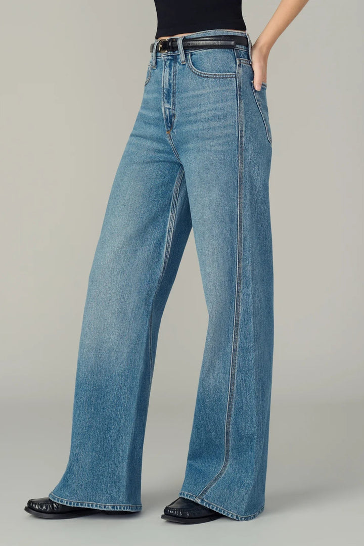 As an expert in the fashion industry, I present to you The Twisted Mia Petite- Wonderous. With a high rise and slim fit tailored specifically for those 5'4" and under, our jeans offer a flattering silhouette. The twisted side seam and wide leg add a unique touch to this classic design. Zip fly and 5-pocket styling for convenience.