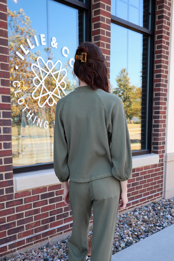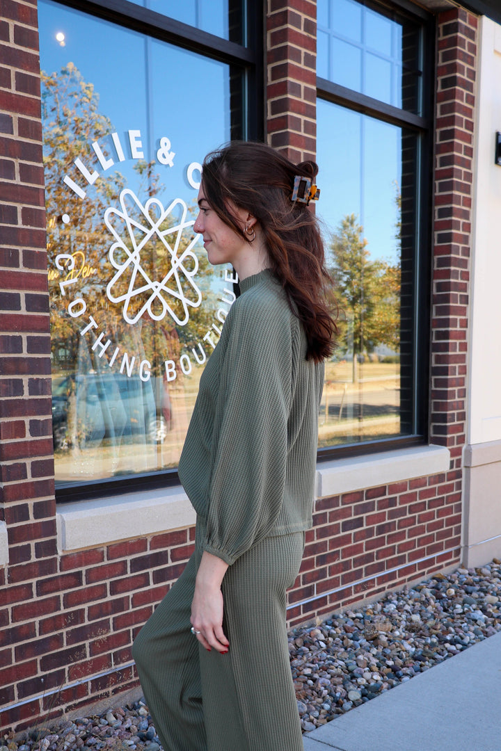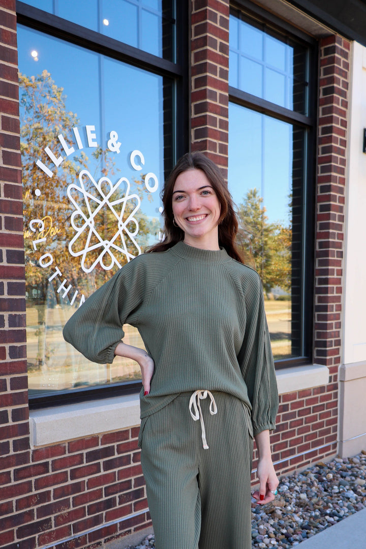 Thermal Mock Neck Dolman Sweatshirt—Fern Green