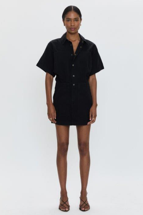 The Tully Button-Down Mini Dress in Fade to Black offers a perfect blend of style and comfort. With an elastic waistband for a flattering fit, oversized elbow-length sleeves, and a utility-style mini skirt, this dress is both functional and fashionable. Elevate your wardrobe with this versatile piece.