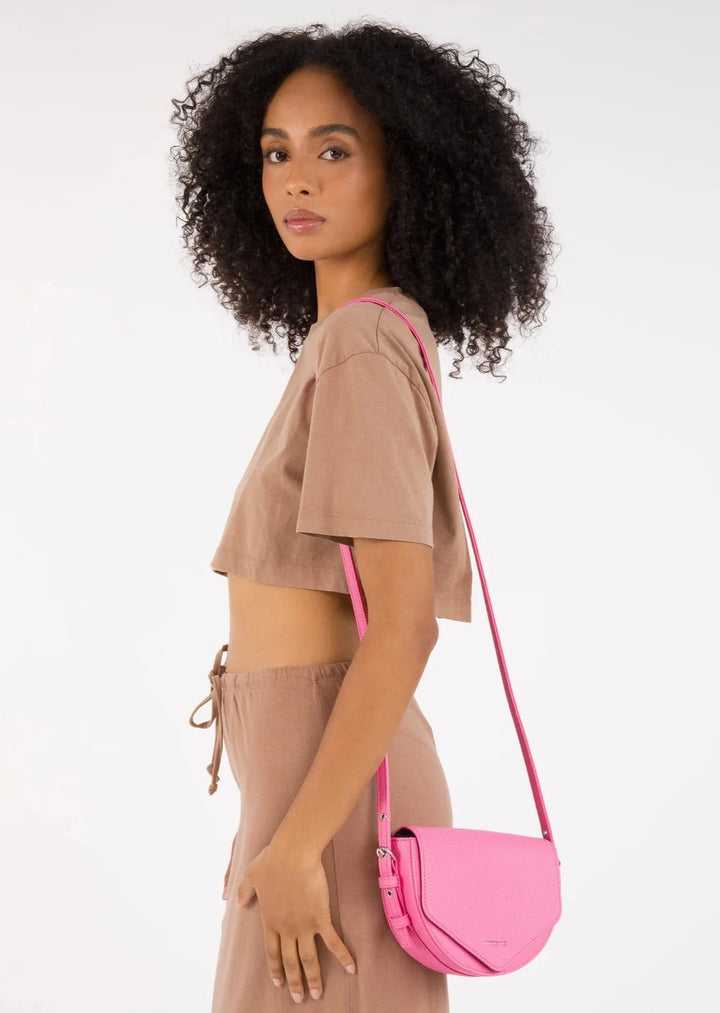 Twill Vegan Leather Saddle Bag- Rosebud Pink