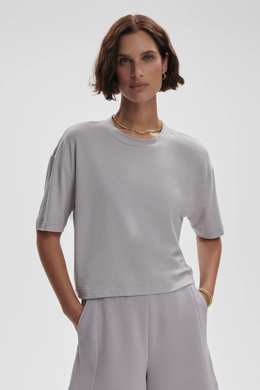 Enhance your comfort and style with our Venice Easy Tee in Raindrops. Made from soft Modal Jersey, it offers a relaxed fit and timeless crew neck design. With versatility and easy tucking, elevate your wardrobe effortlessly.